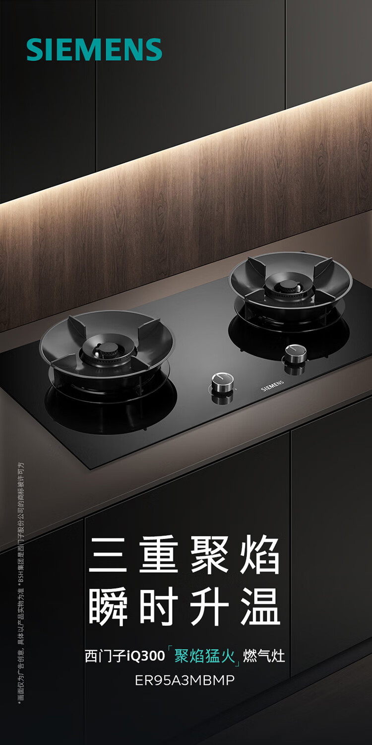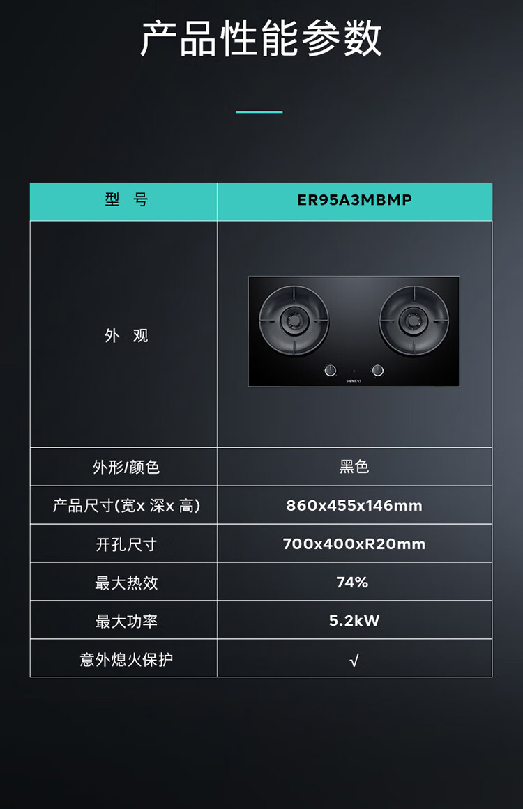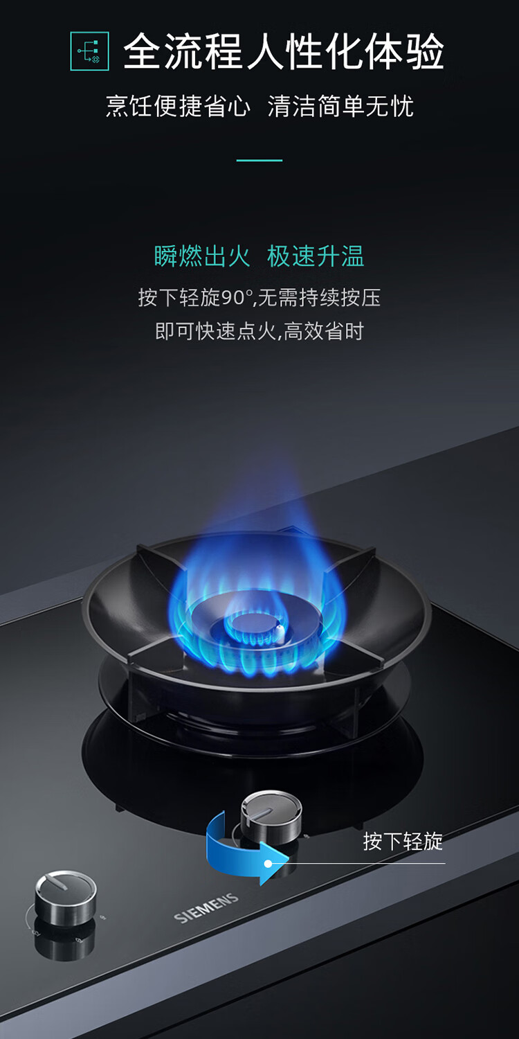 西门子(SIEMENS)5.2kw嵌入式大火力燃气灶 三重聚焰 瞬时升温 230°宽幅旋钮 炉头易拆洗 意外熄火保护 ER95A3MBMP