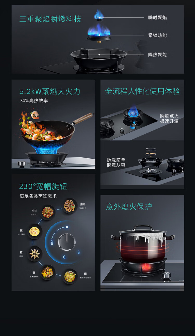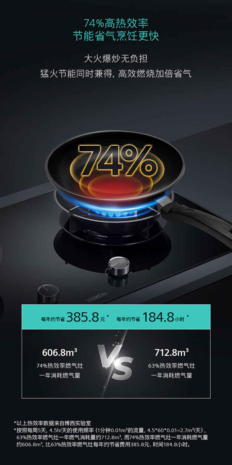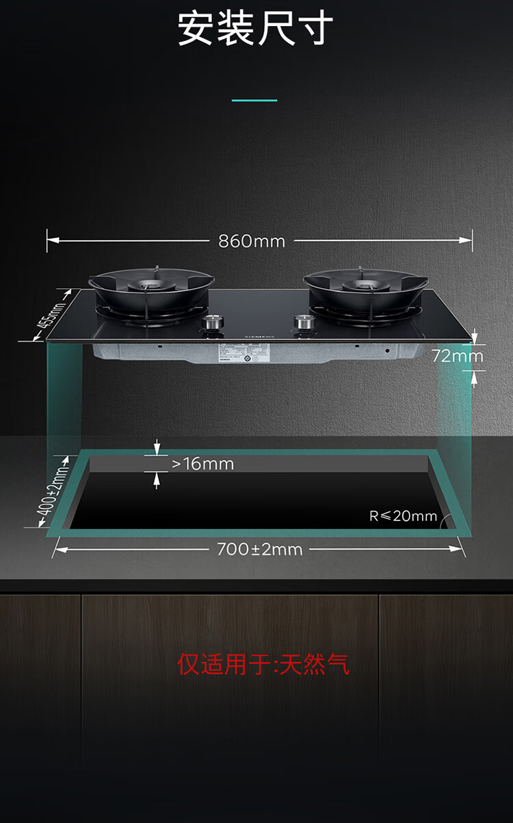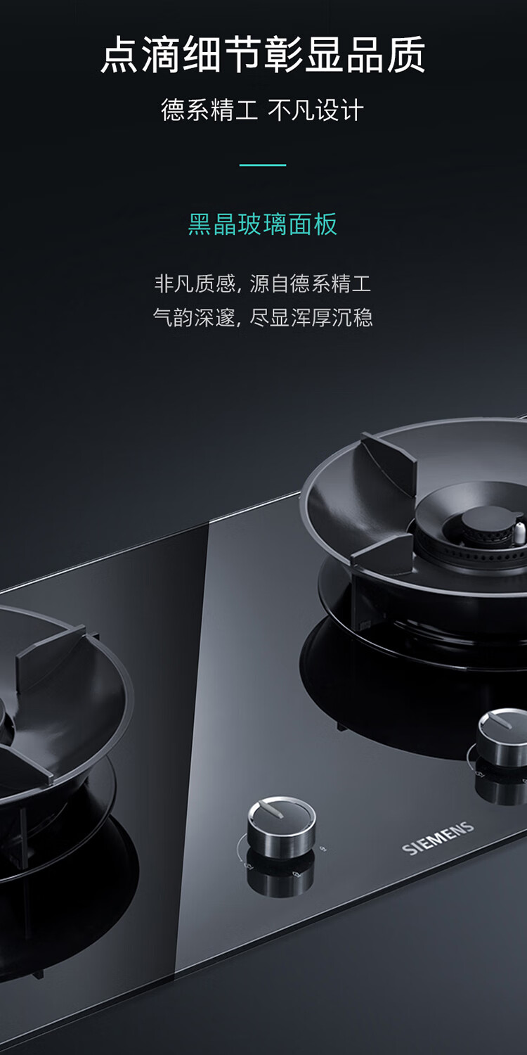 西门子(SIEMENS)5.2kw嵌入式大火力燃气灶 三重聚焰 瞬时升温 230°宽幅旋钮 炉头易拆洗 意外熄火保护 ER95A3MBMP