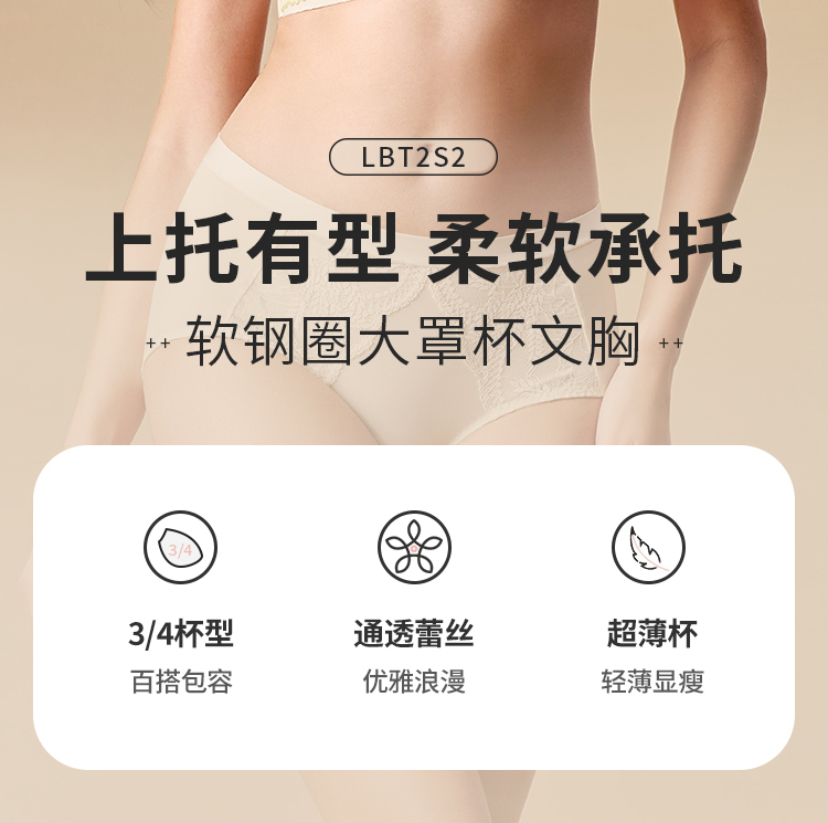 都市丽人内衣完美包容常规文胸蕾丝超薄文胸3/4杯四排扣软钢圈LBT2S2