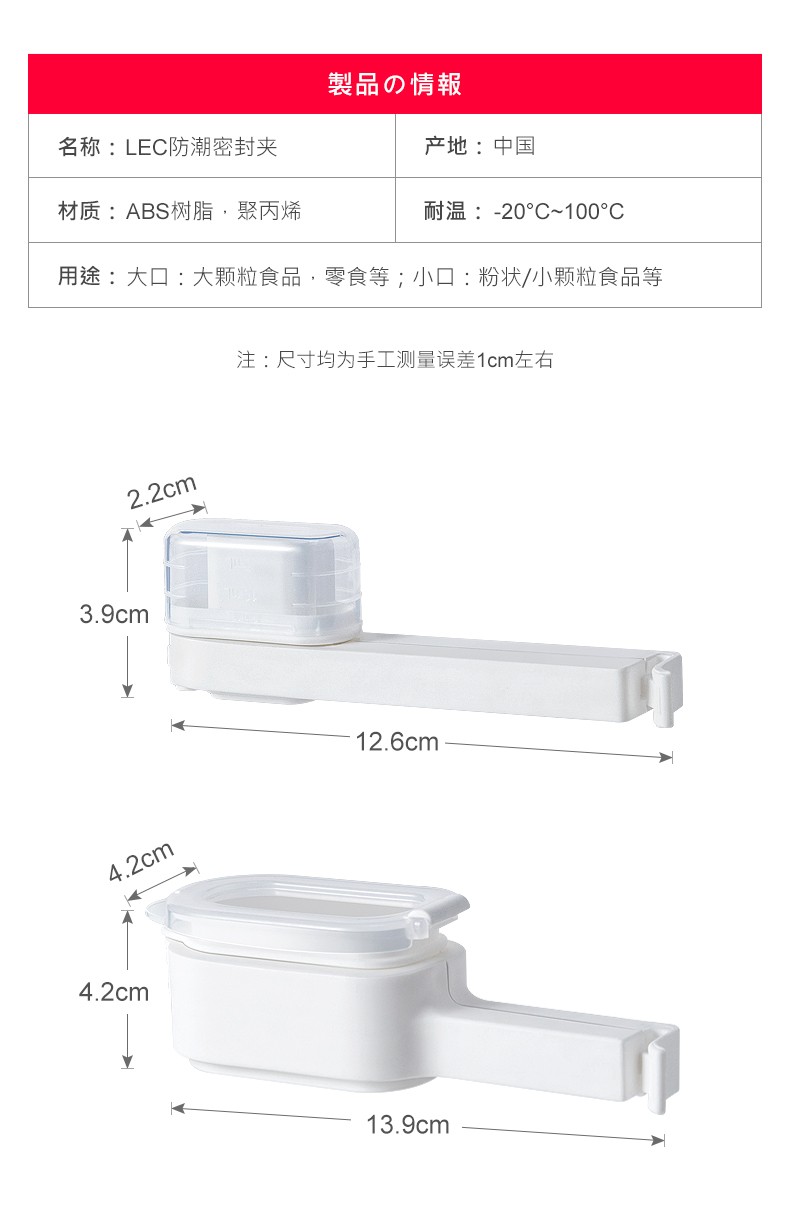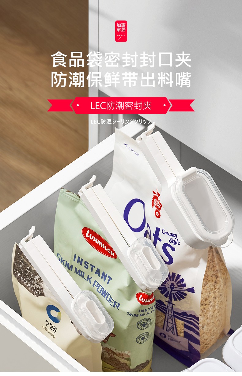 日本LEC封口夹子零食燕麦塑料袋防潮神器食品食物保鲜密封出料嘴 小口封口夹