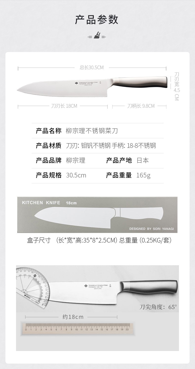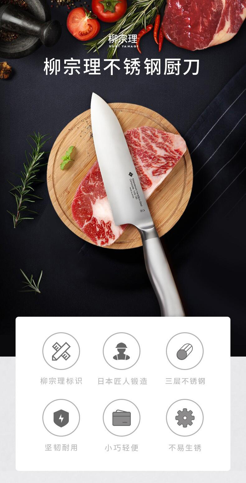 日本进口柳宗理不锈钢日式厨刀寿司料理刀(三德刀18CM)