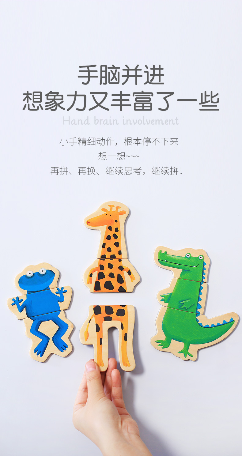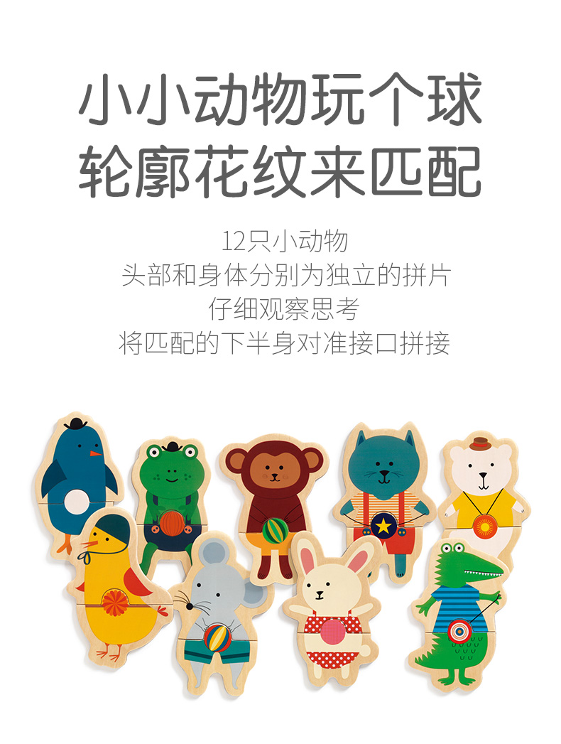 djeco宝宝大块木质动物拼图儿童益智幼儿早教玩具两片1-2岁手抓板