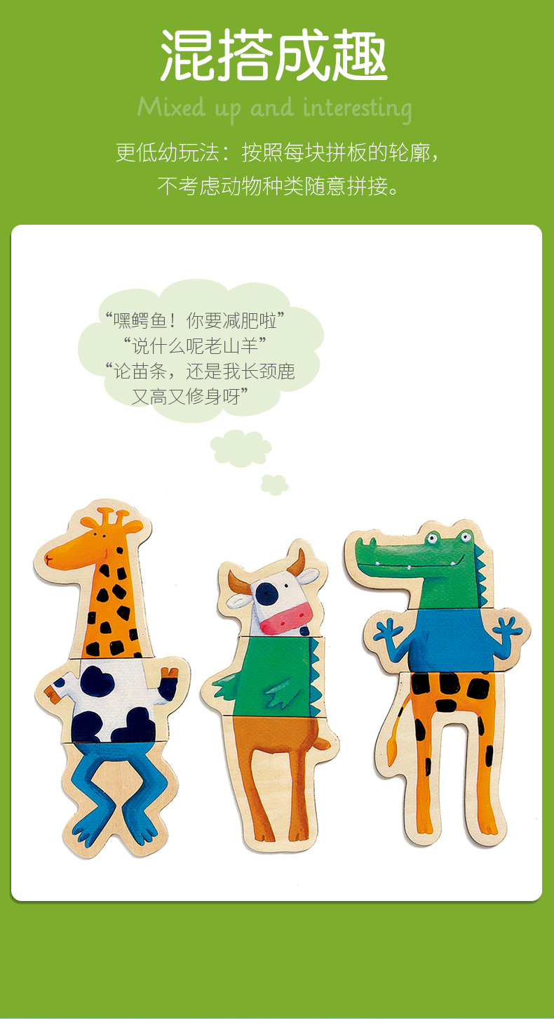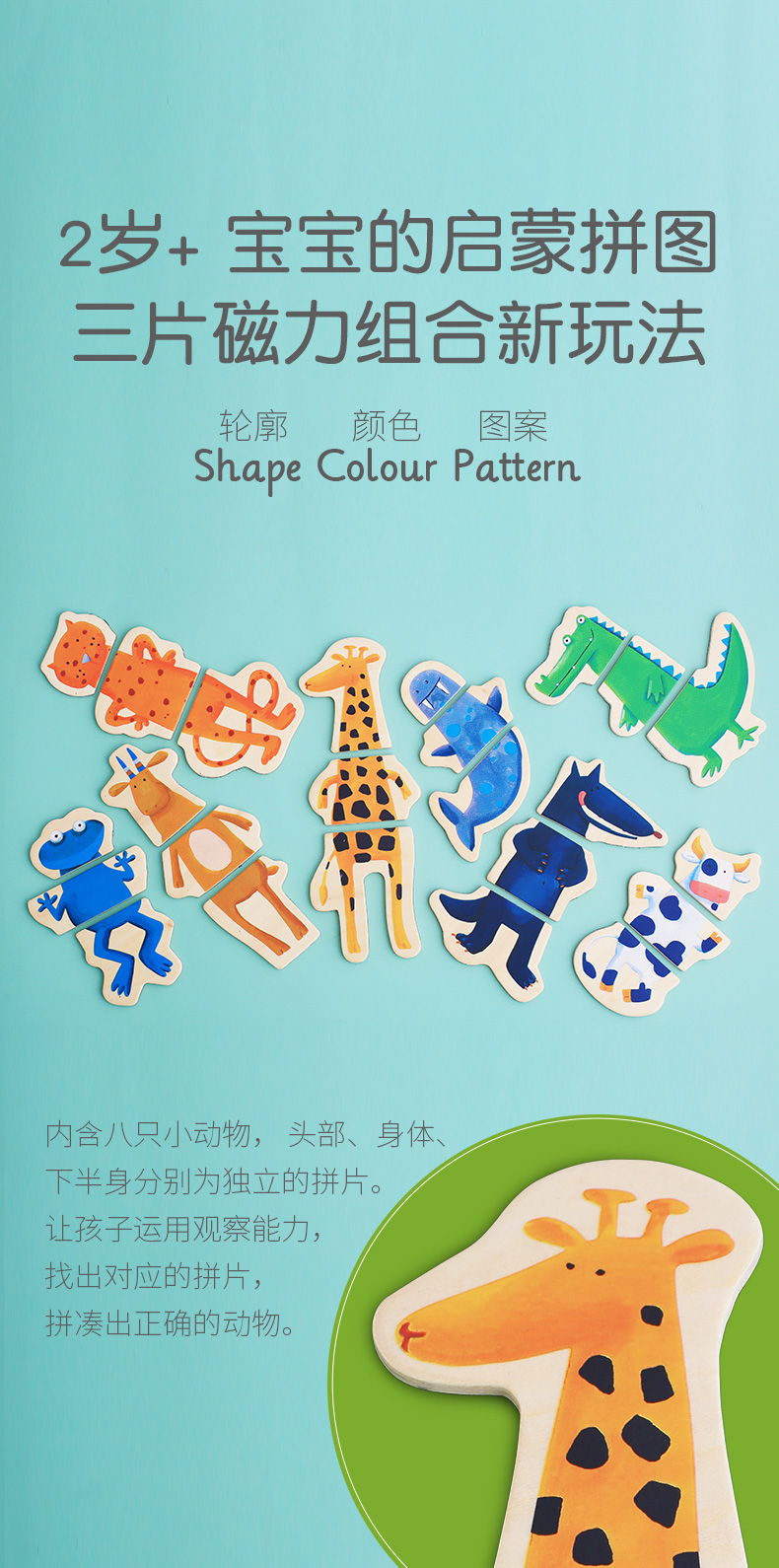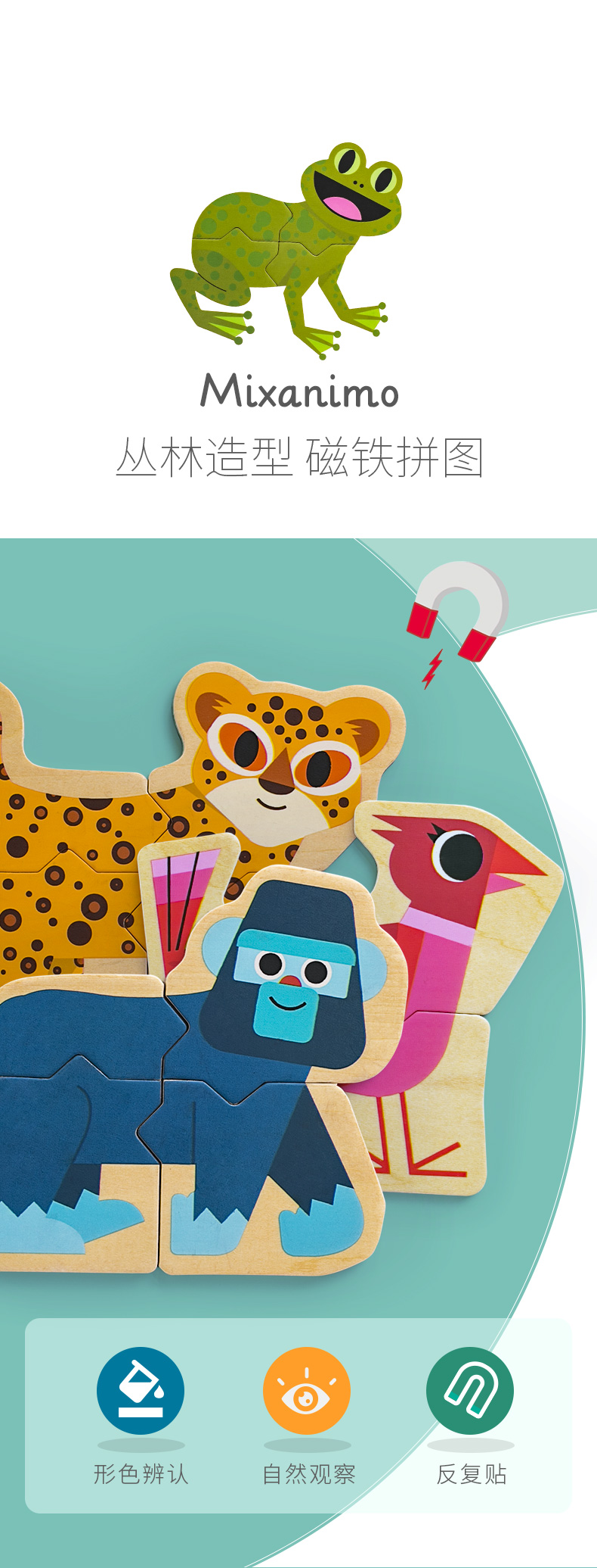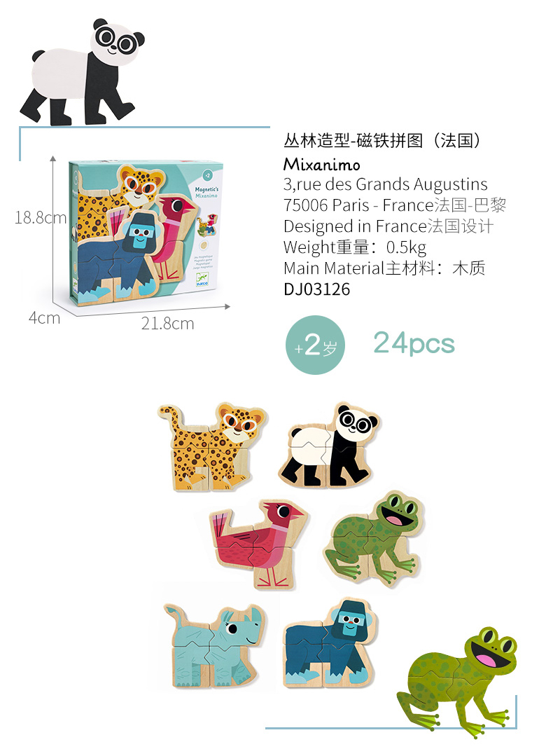 DJECO经典低幼,磁性木制拼图,冰箱贴拼图,动物拼图