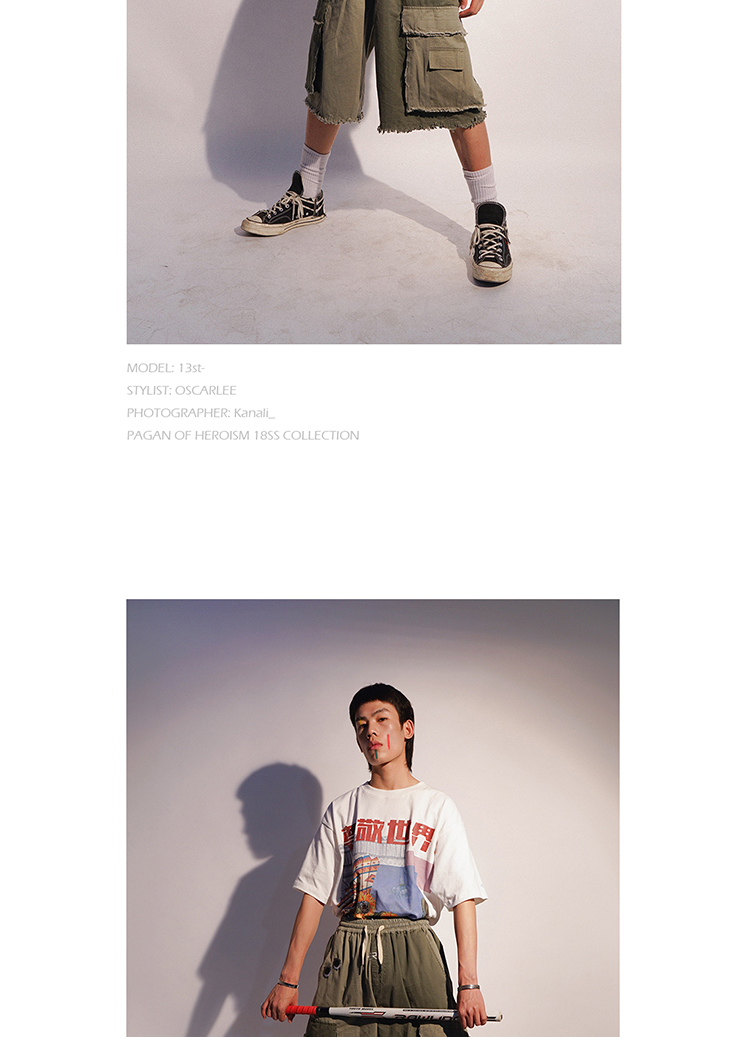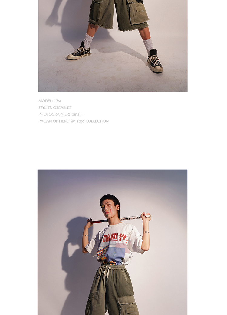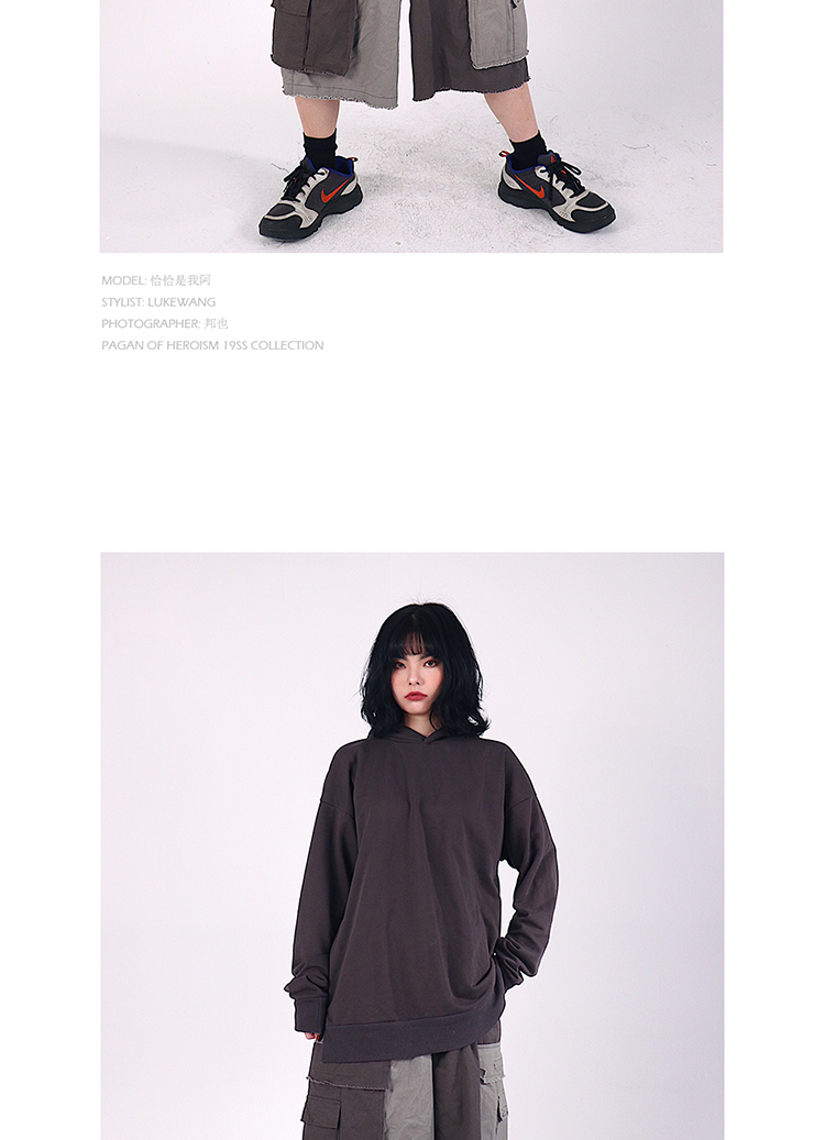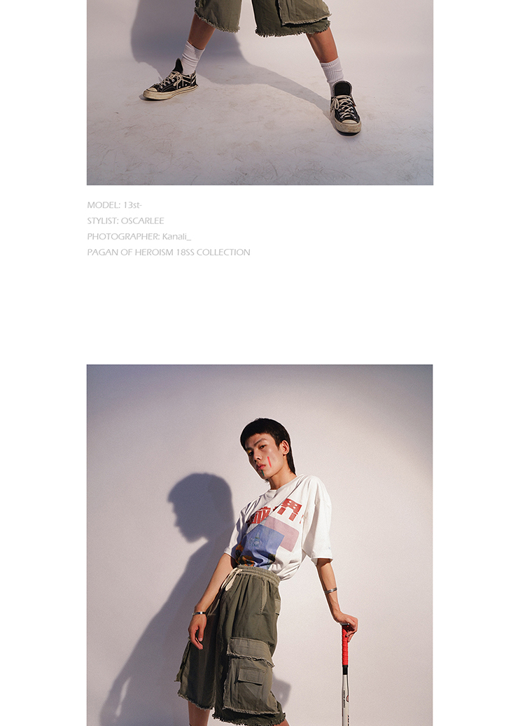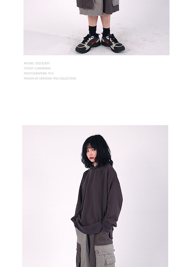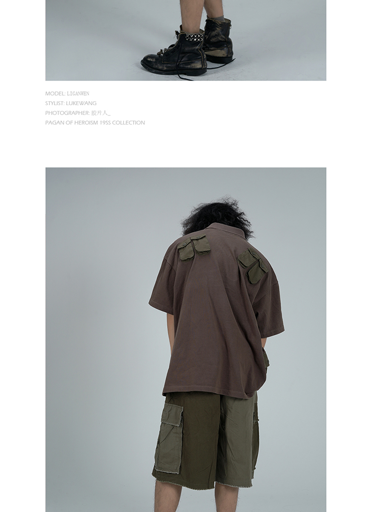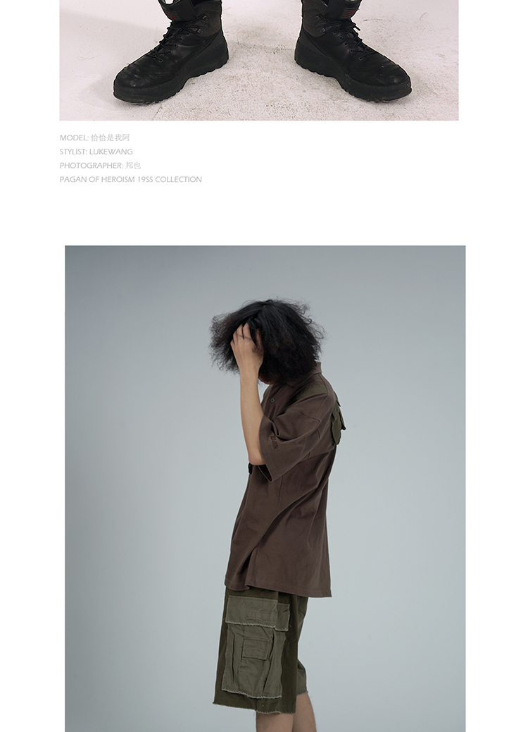 POH 军绿铁灰卡其拼色无边破坏廓形短裤男夏季潮牌多色入五分裤潮