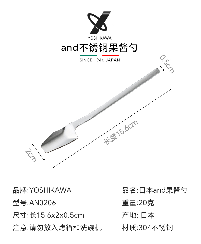 Yoshikawa日本吉川不锈钢果酱勺AN0206【不支持补差,非质量问题不退不换】S