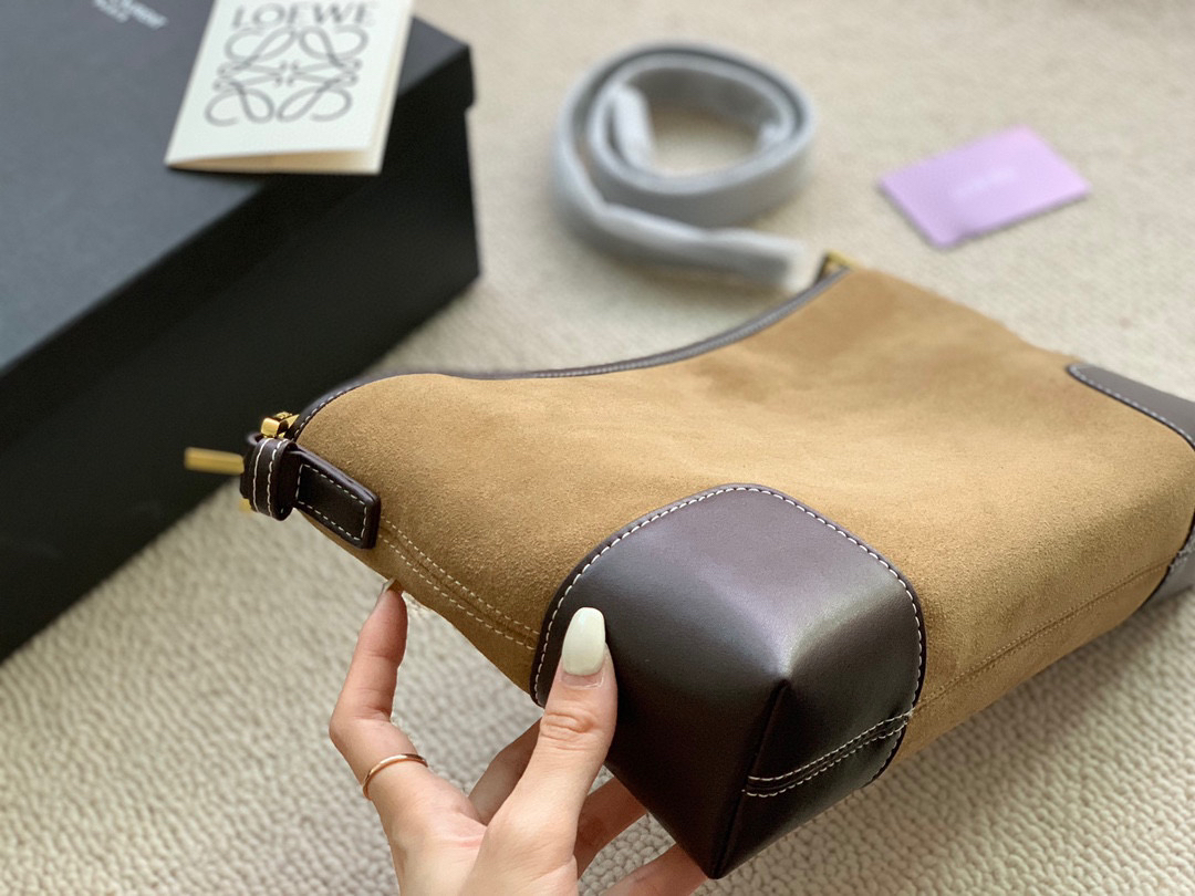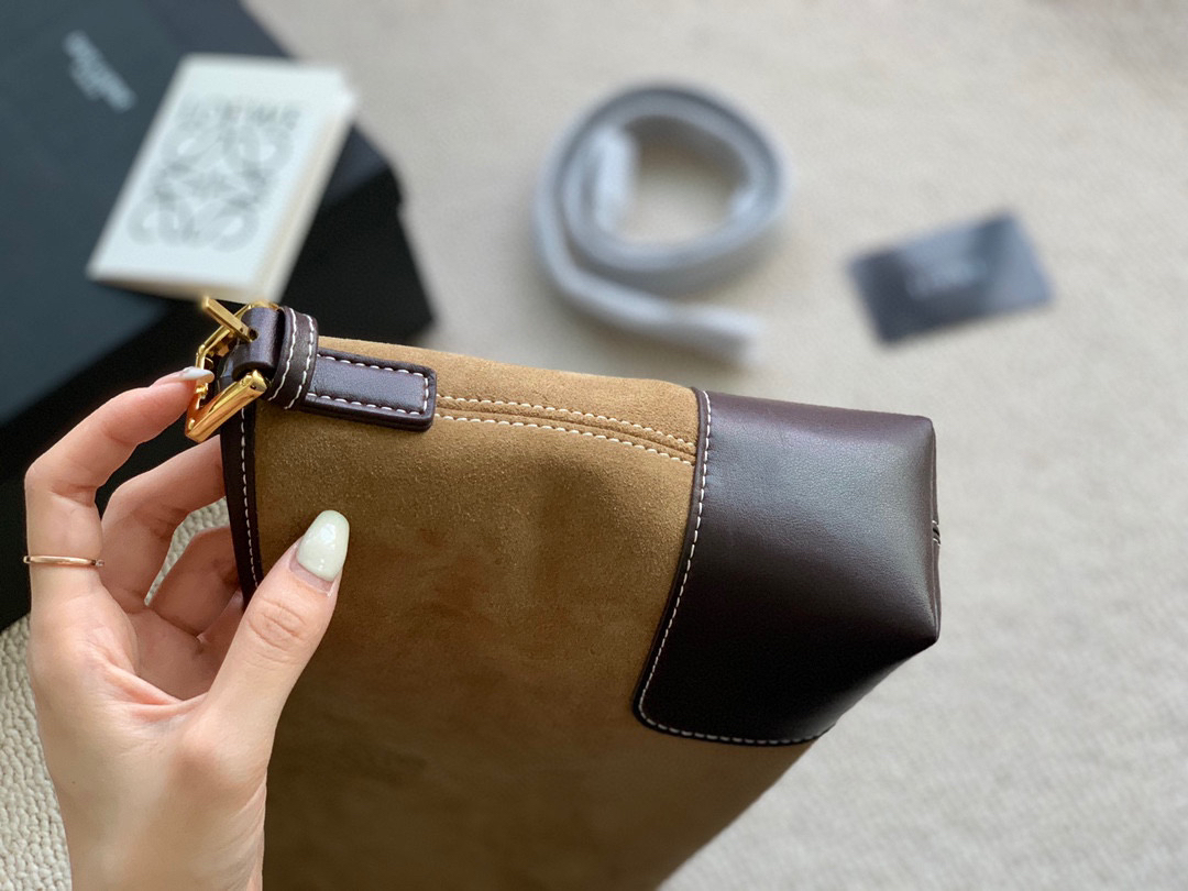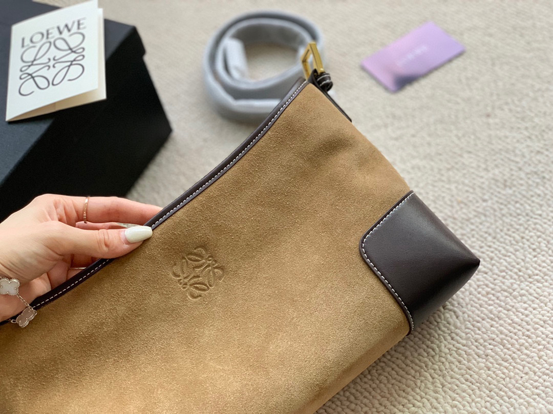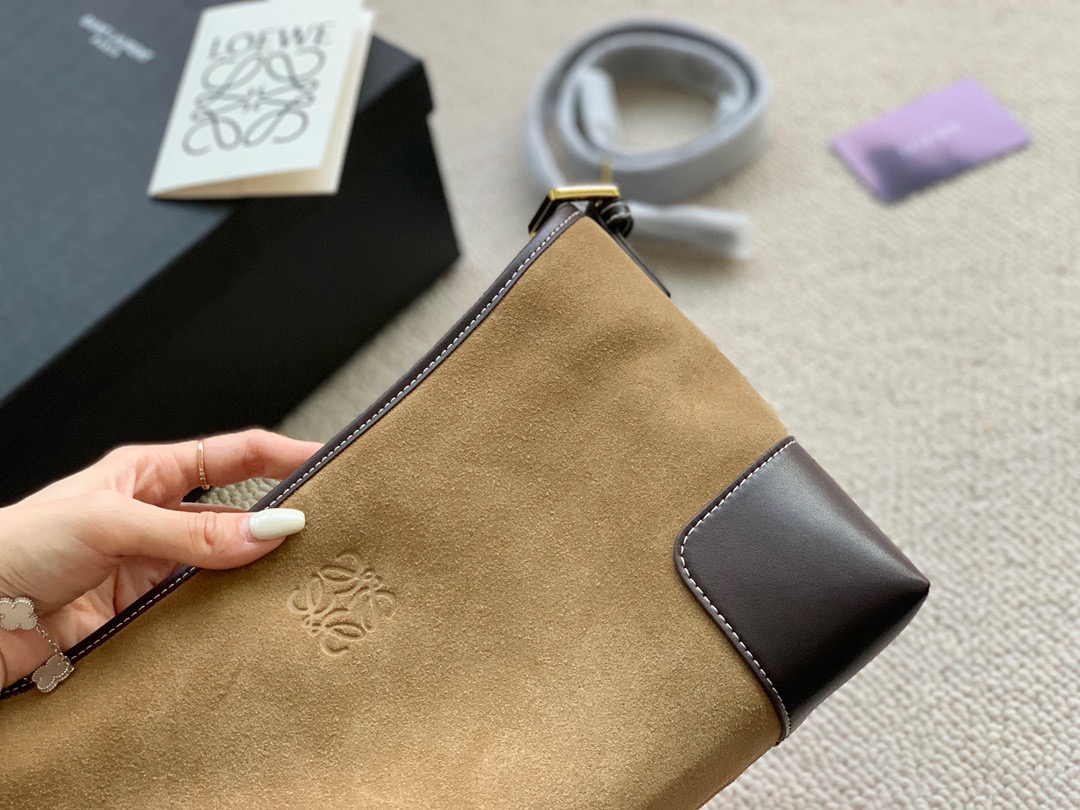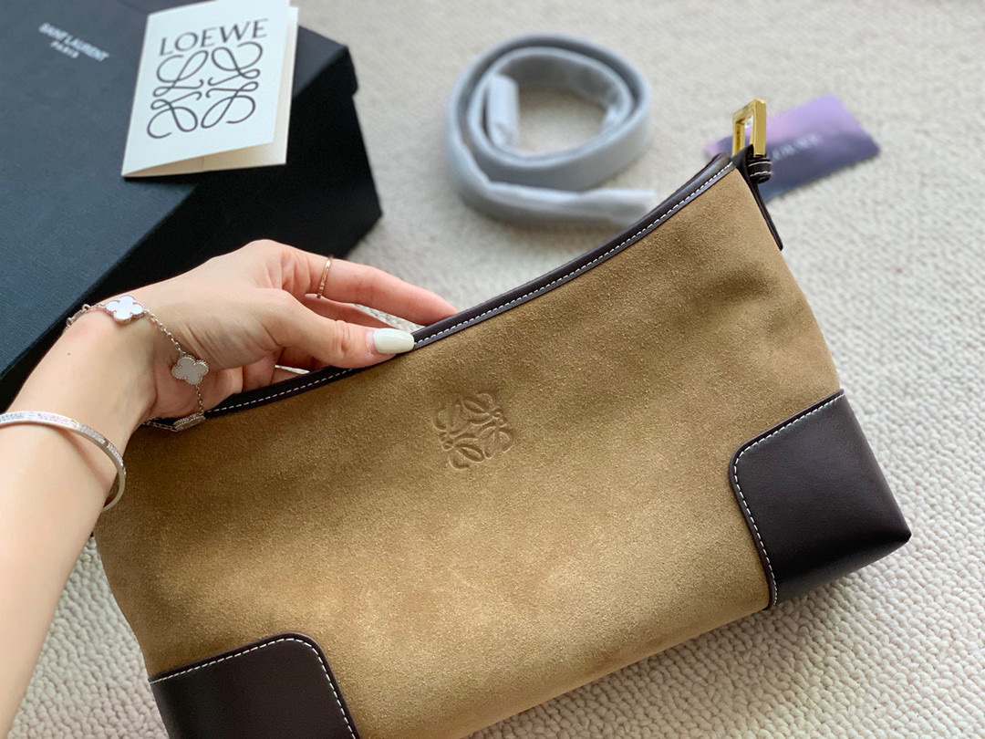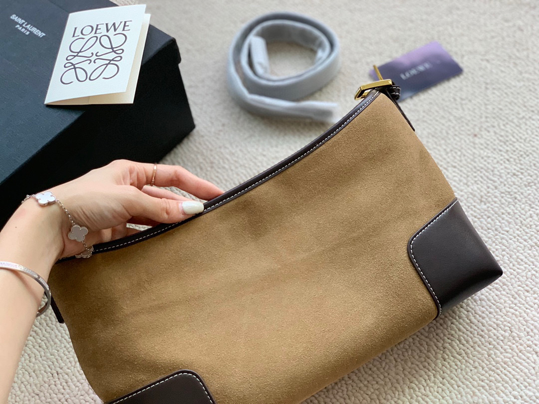 浅色卡其麂皮 四角硬挺牛皮拼接