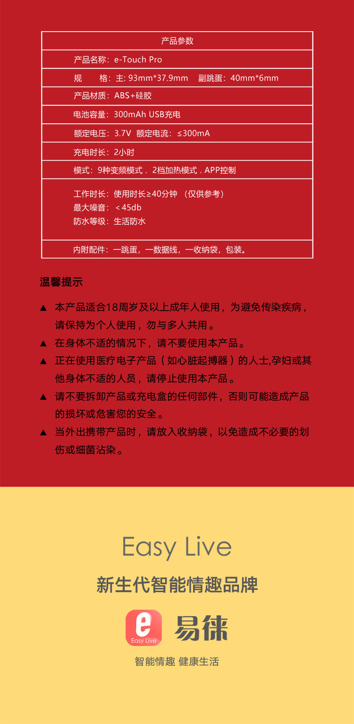 EasyLive易港 e-Touch Pro女用无线智能情趣跳蛋红色