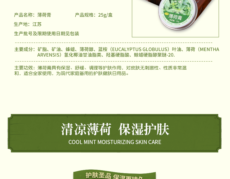 临期特价*26年7月*上海经典薄荷膏25g