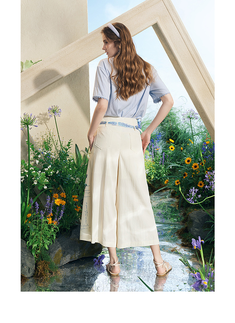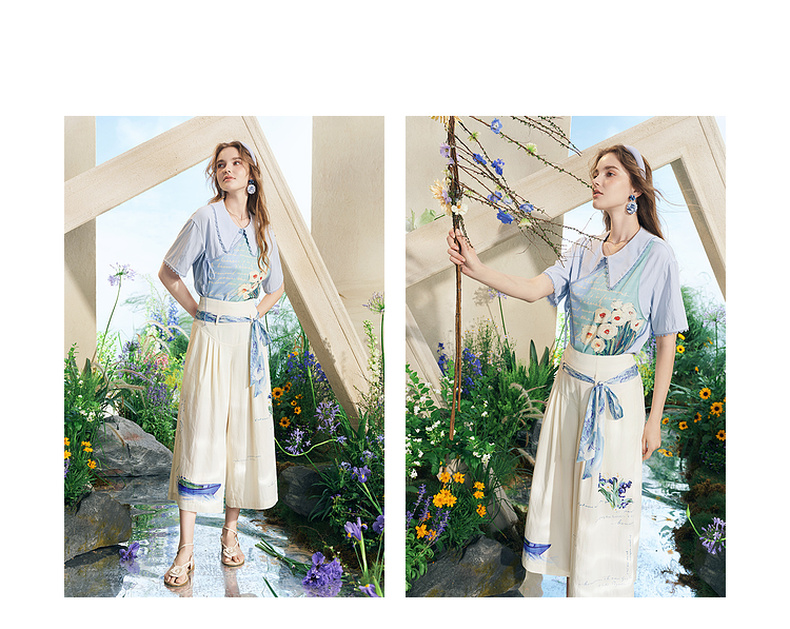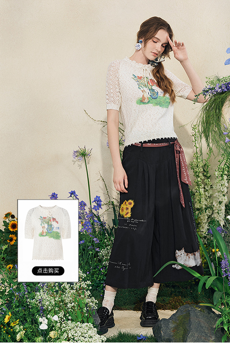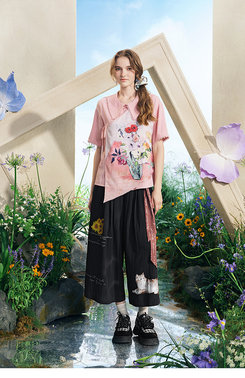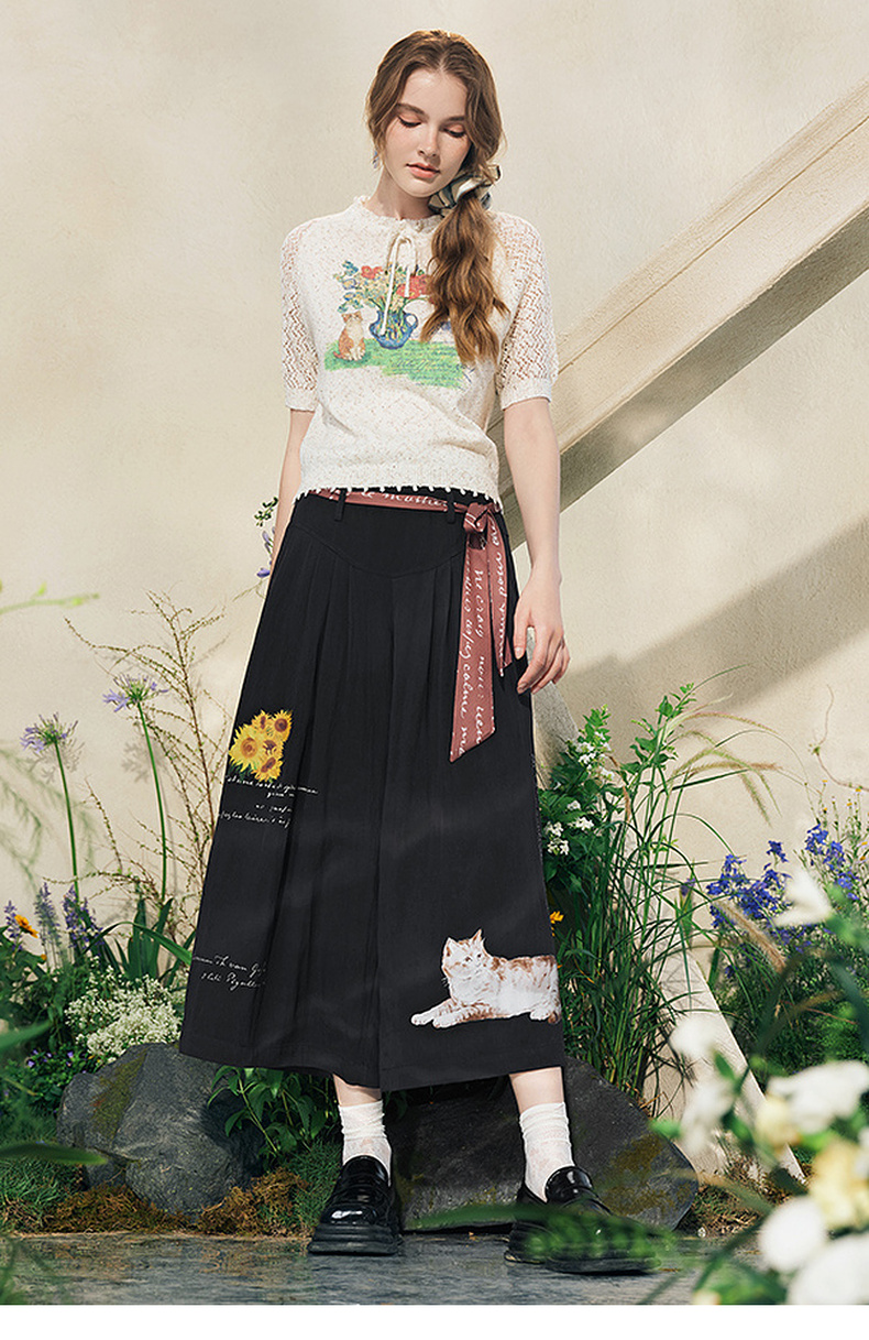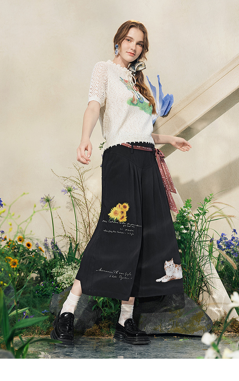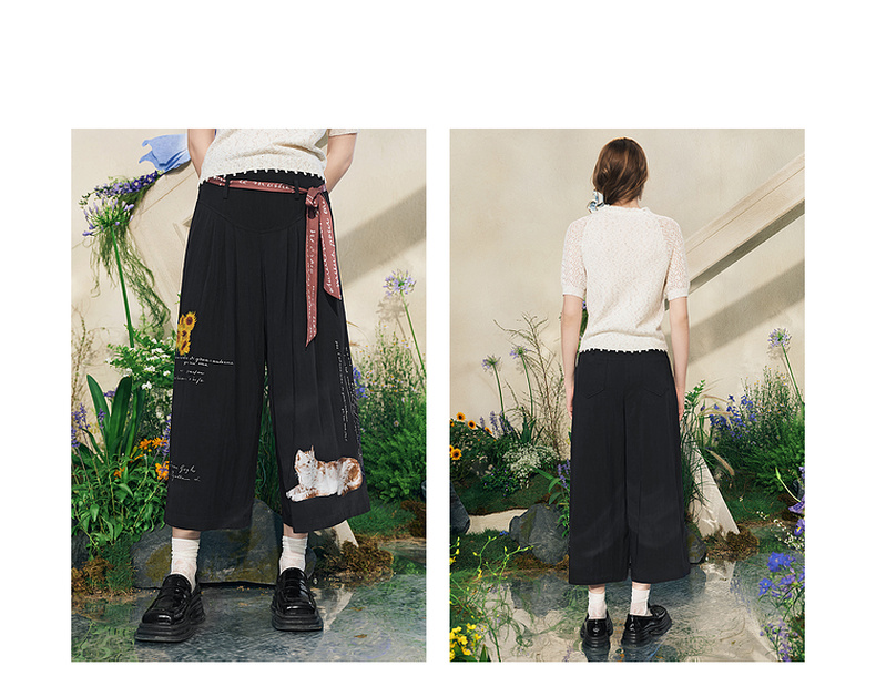两三事梵高文艺 椰风眠昼 2025夏季新款复古印花绑带阔腿休闲裤女