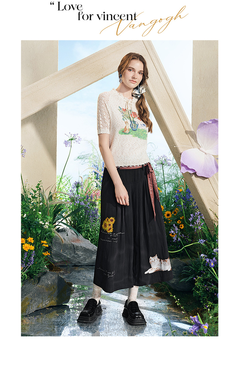 两三事梵高艺术闺房秘话 夏新款优雅油画印花无袖背心裙连衣裙
