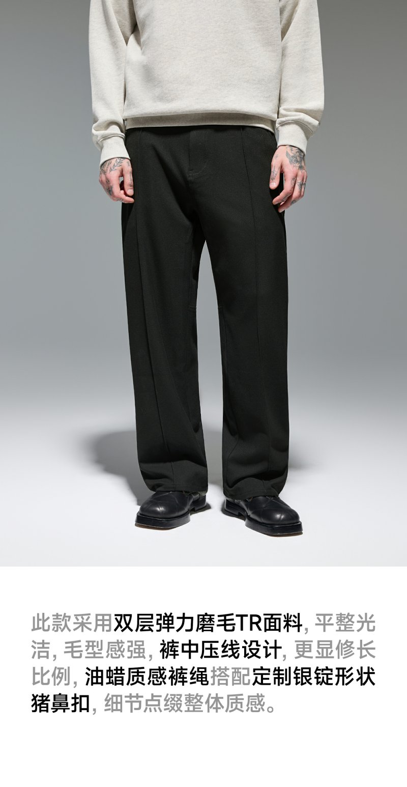 CHINISM赤尘 黑色TR垂感直筒西裤男秋季宽松百搭男士通勤西装裤子