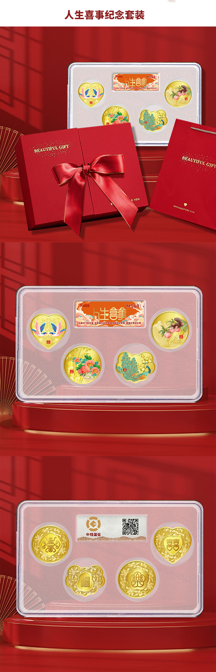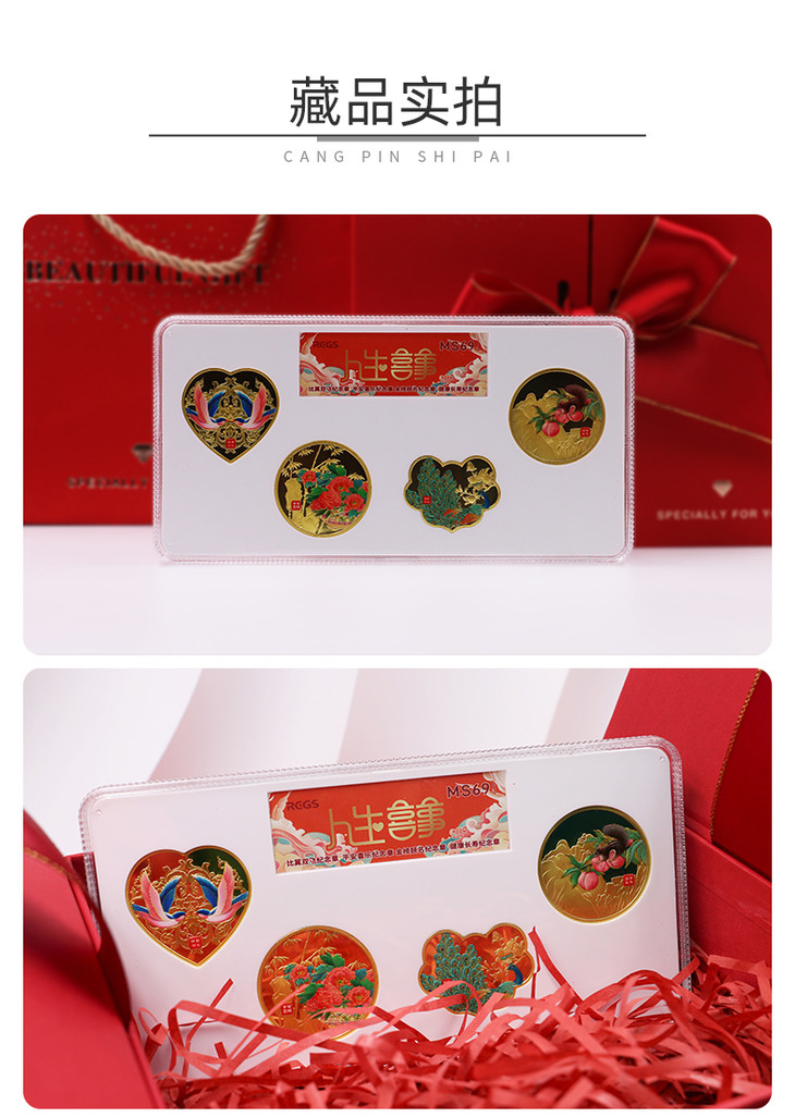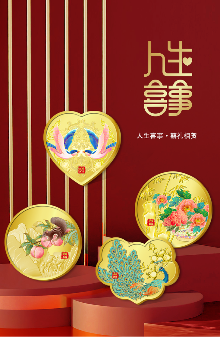 【吉祥文化】人生喜事系列异形彩色纪念章 礼盒装