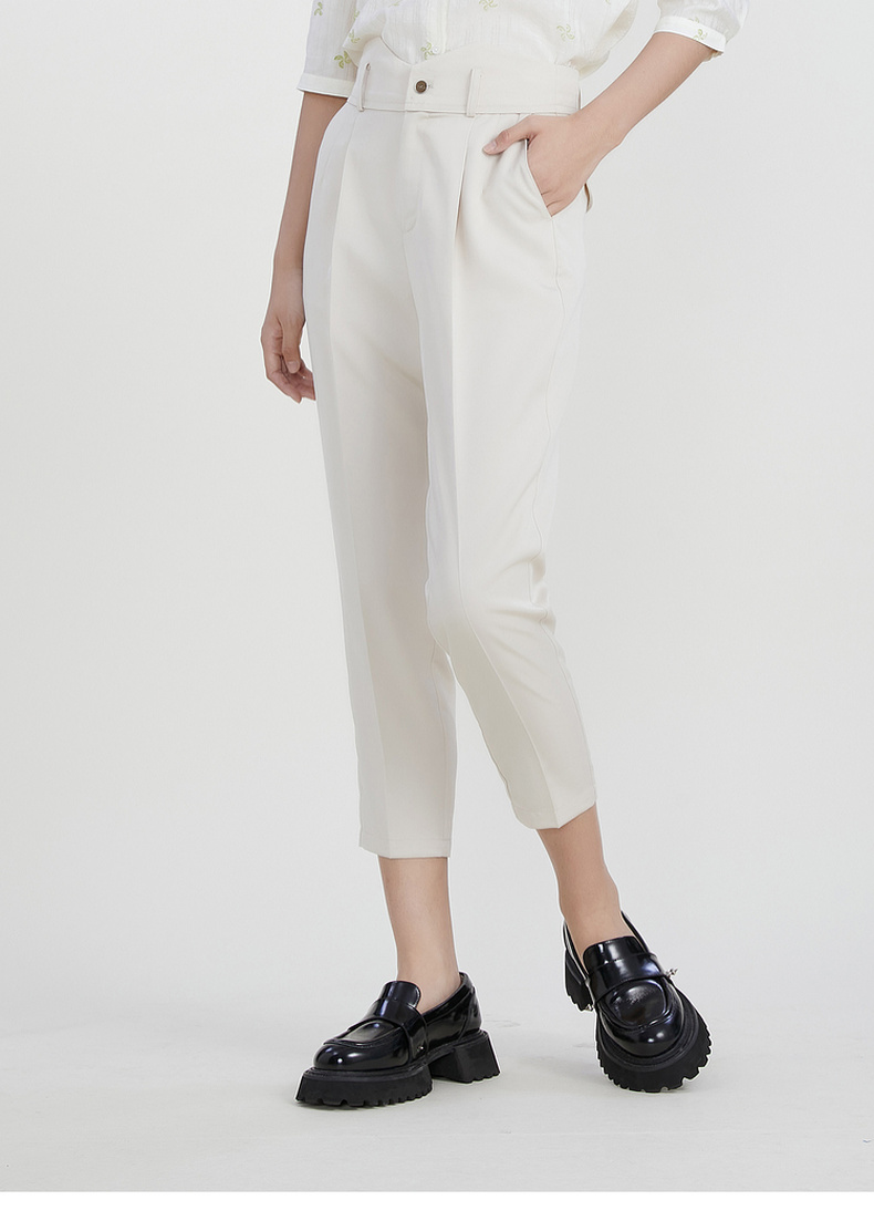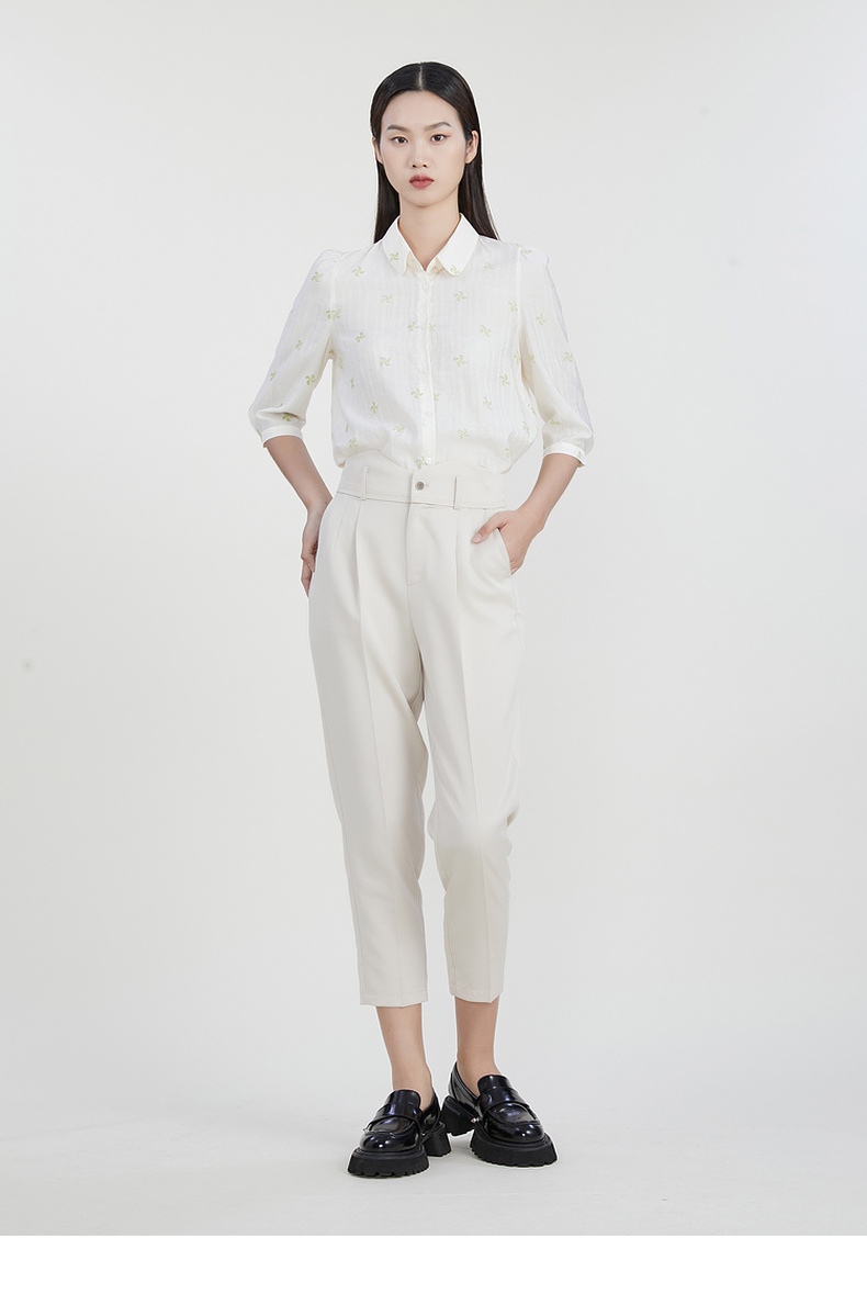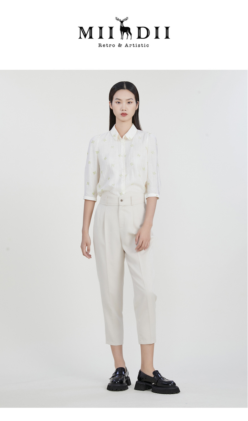谜底纯色休闲裤女2023春新款简约百搭宽松萝卜裤九分裤231MK0087