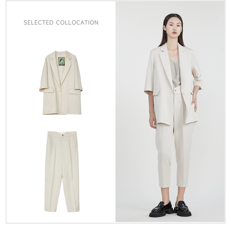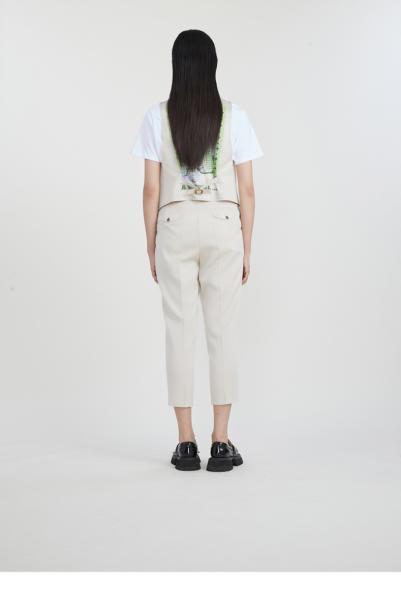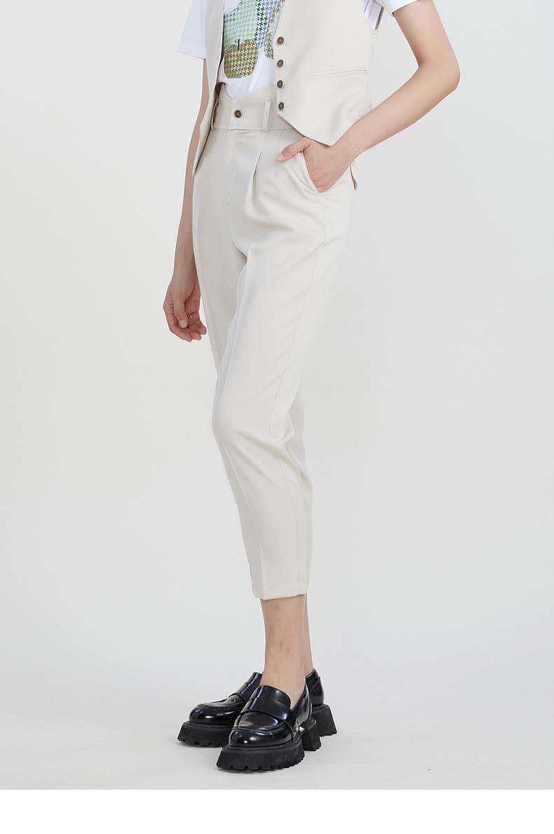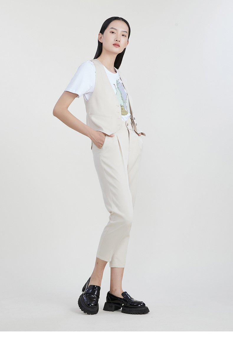 谜底纯色休闲裤女2023春新款简约百搭宽松萝卜裤九分裤231MK0087