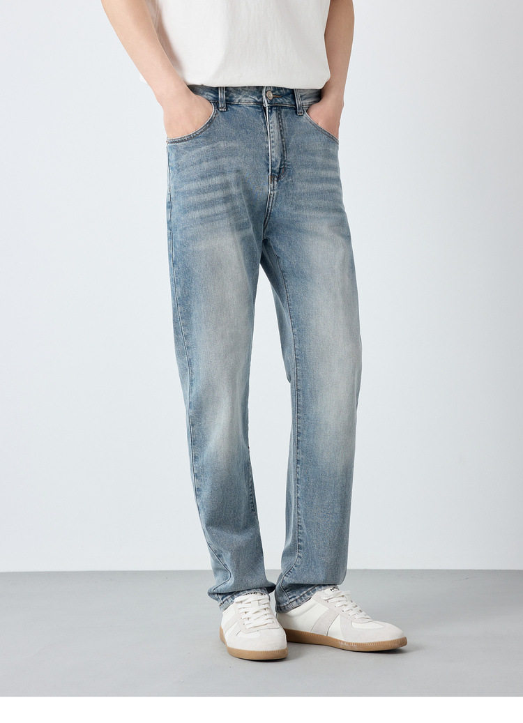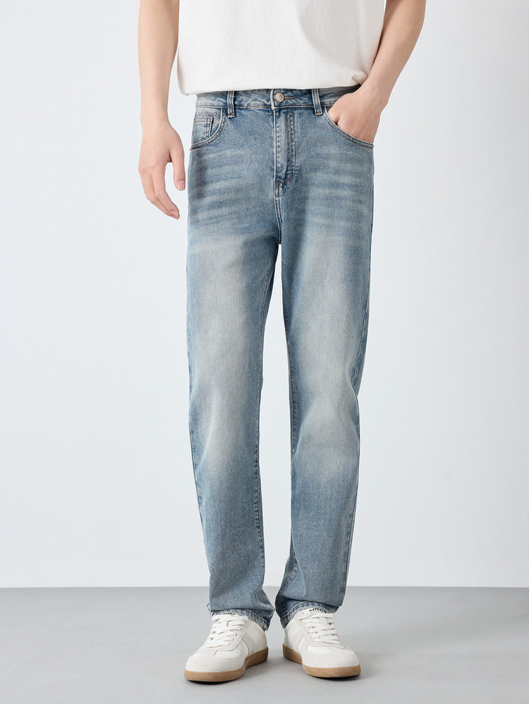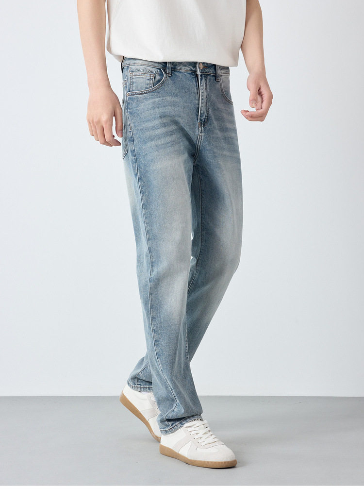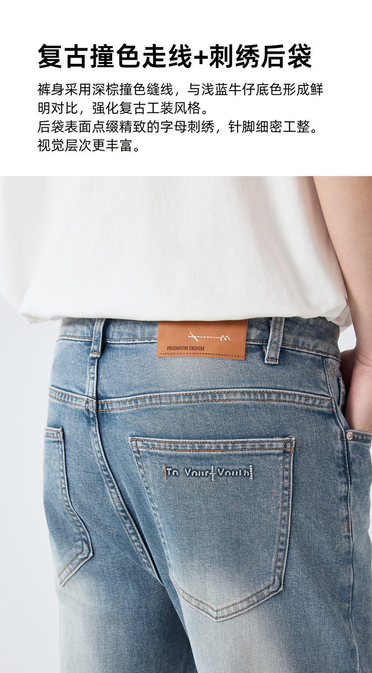 墨麦客男装高智通勤洗水牛仔裤男2026春新款字母装饰裤子男97369.