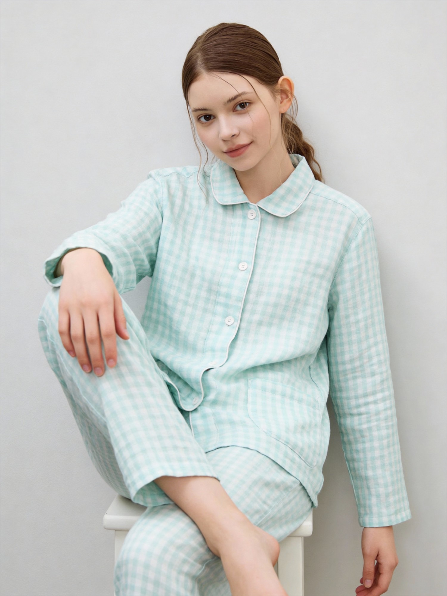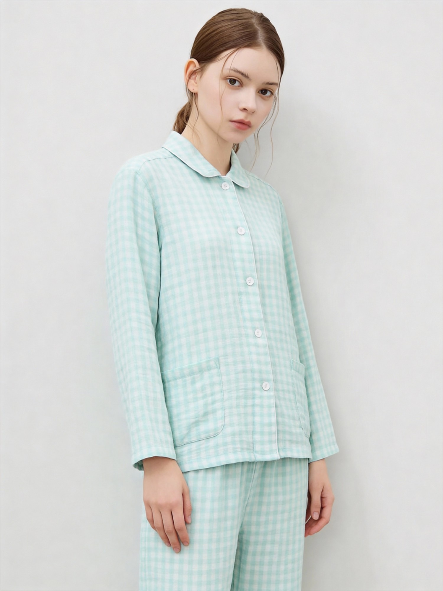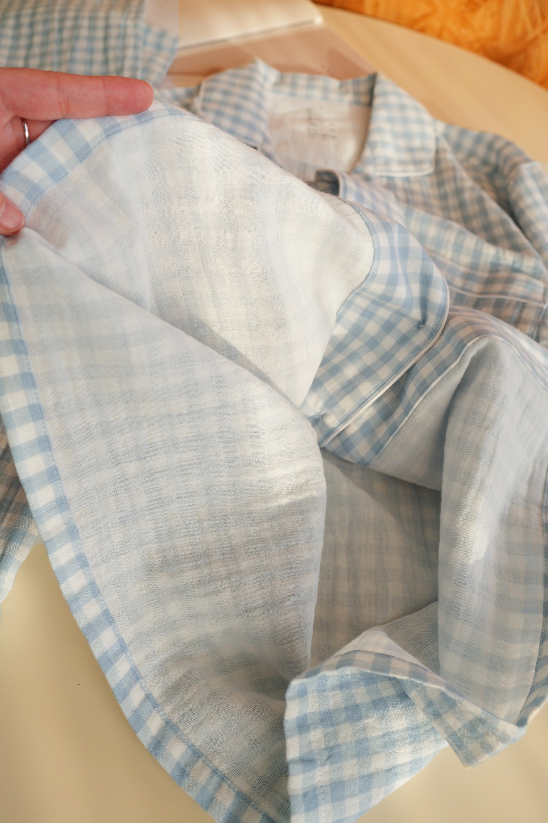 双层纱结构蓬松透气,能快速吸湿排汗,四季穿着都舒适,尤其适合贴身家居穿着。