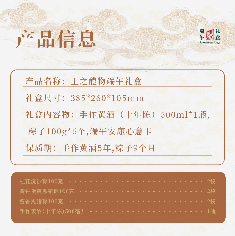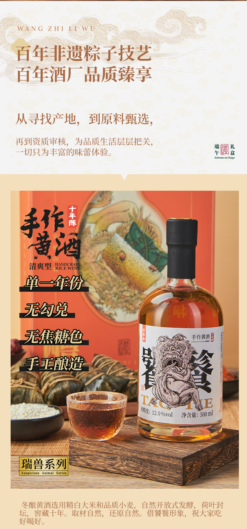 【规格】500ml手作黄酒十年陈*1瓶+粽子100g *6只