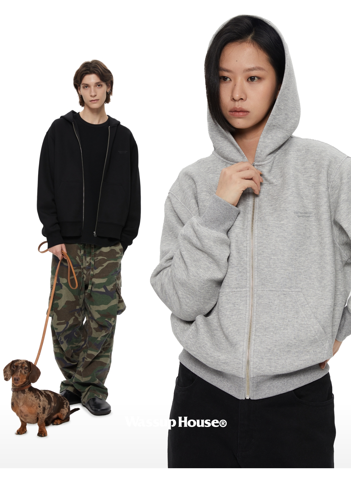 WassupHouse 拉链空气层连帽卫衣