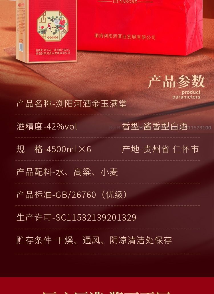 2023年浏阳河金玉满堂 53度酱香型白酒 整箱450ml*6瓶包邮
