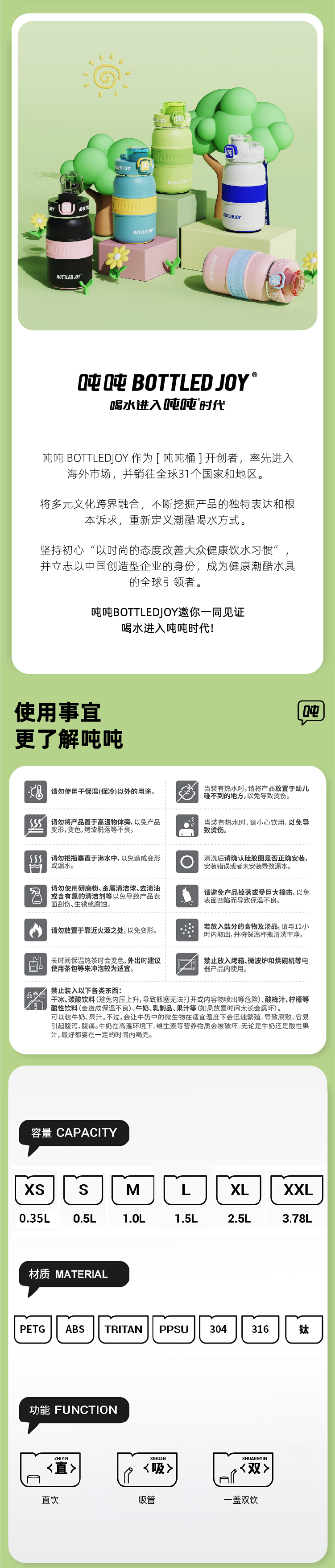 - 吨吨BOTTLED JOY作为吨吨桶开创者,重新定义潮酷喝水方式,喝水进入吨吨时代!正牌吨吨桶,吨吨BOTTLED JOY