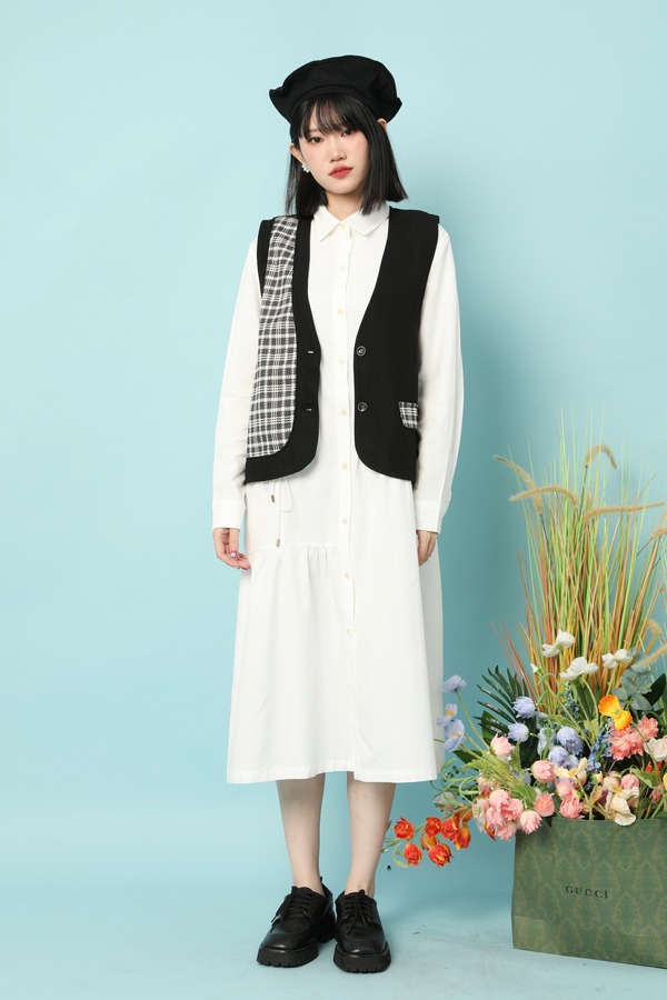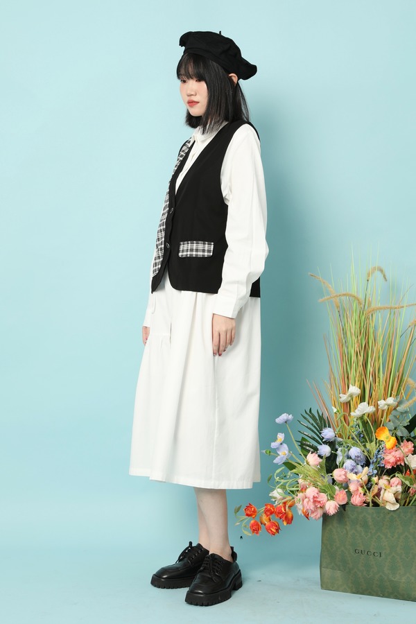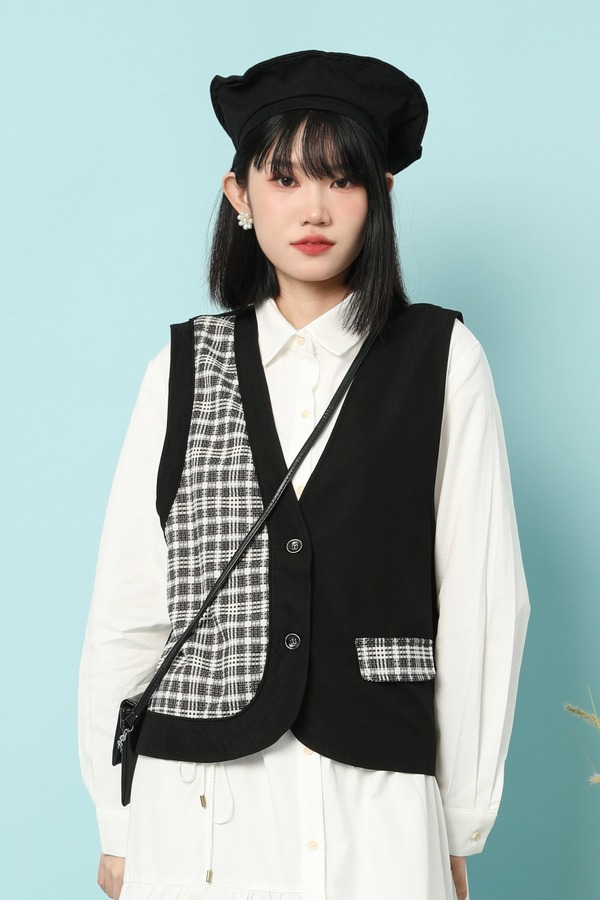 LNNNS 不对称式拼接格纹马甲 15860