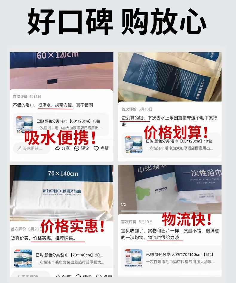 一次性浴巾毛巾独立包装套装出差旅行加厚加大吸水酒店宾馆专用品