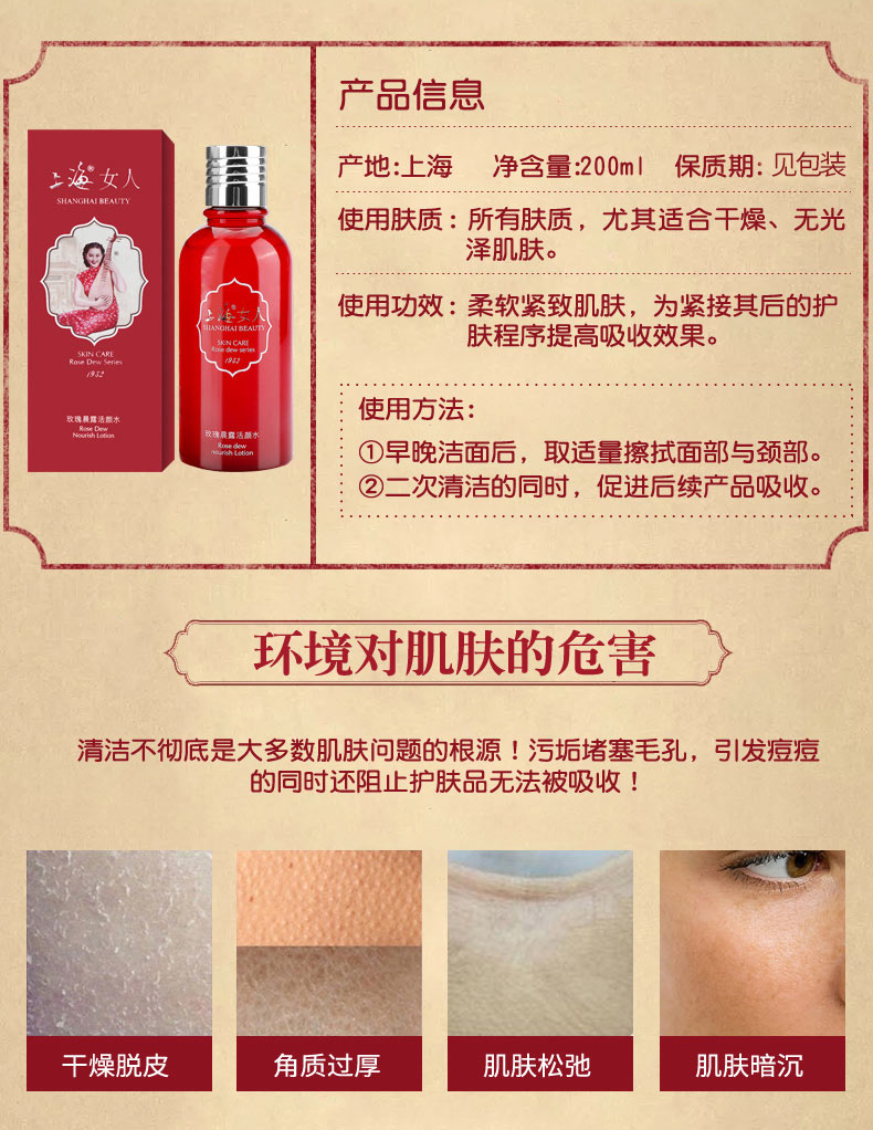 上海女人玫瑰晨露活颜水200ml