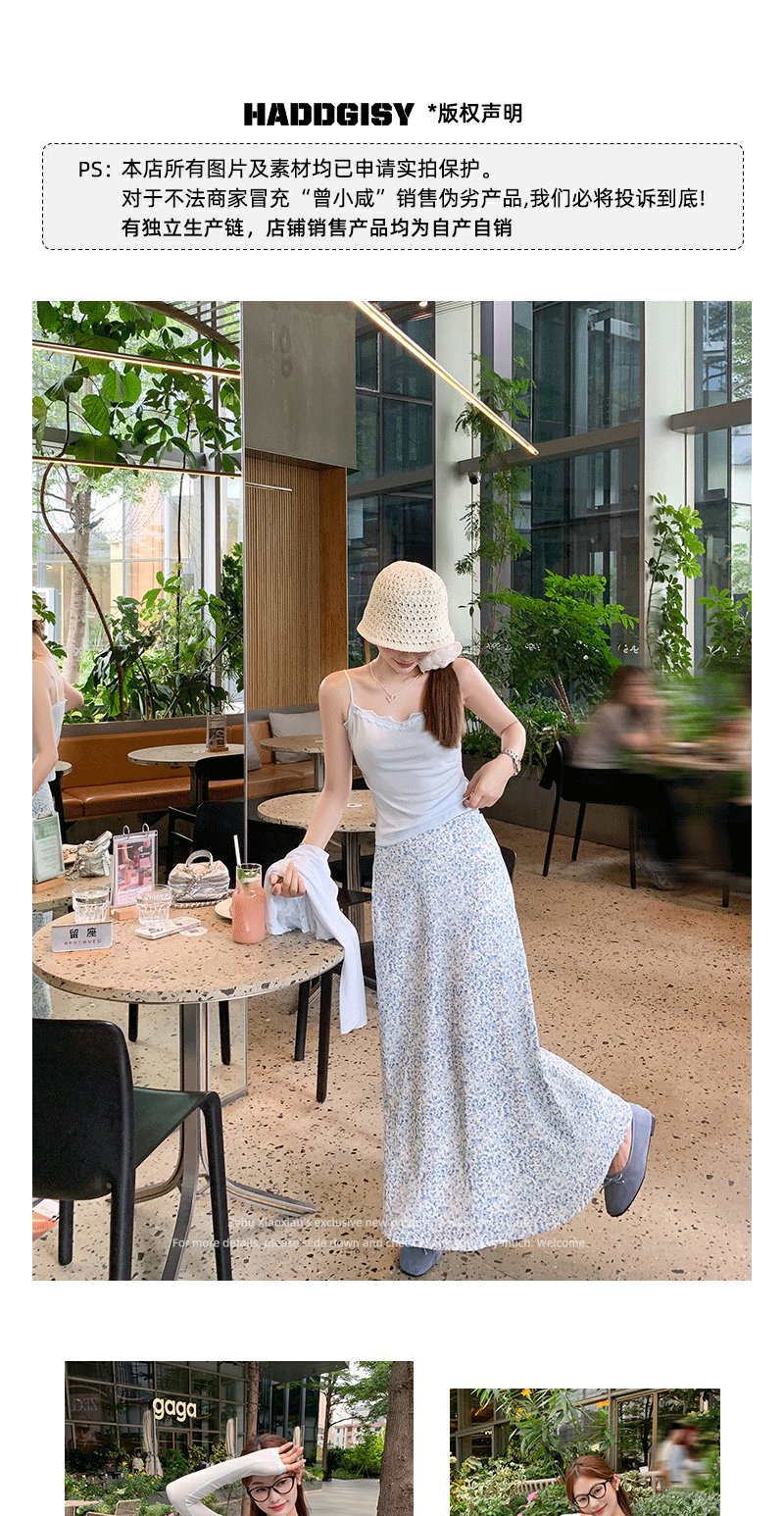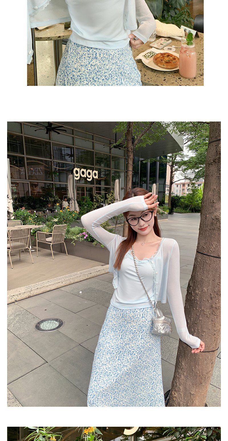 <曾小咸推荐>温柔蕾丝花边蓝色针织开衫两件套