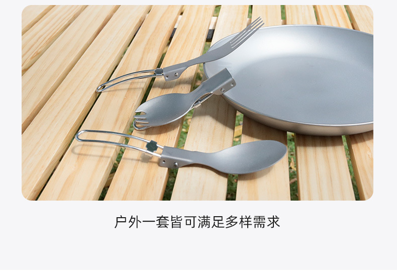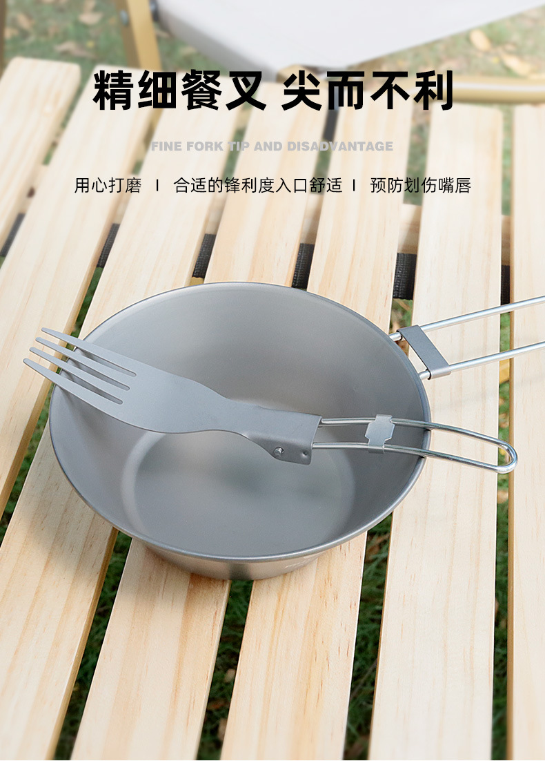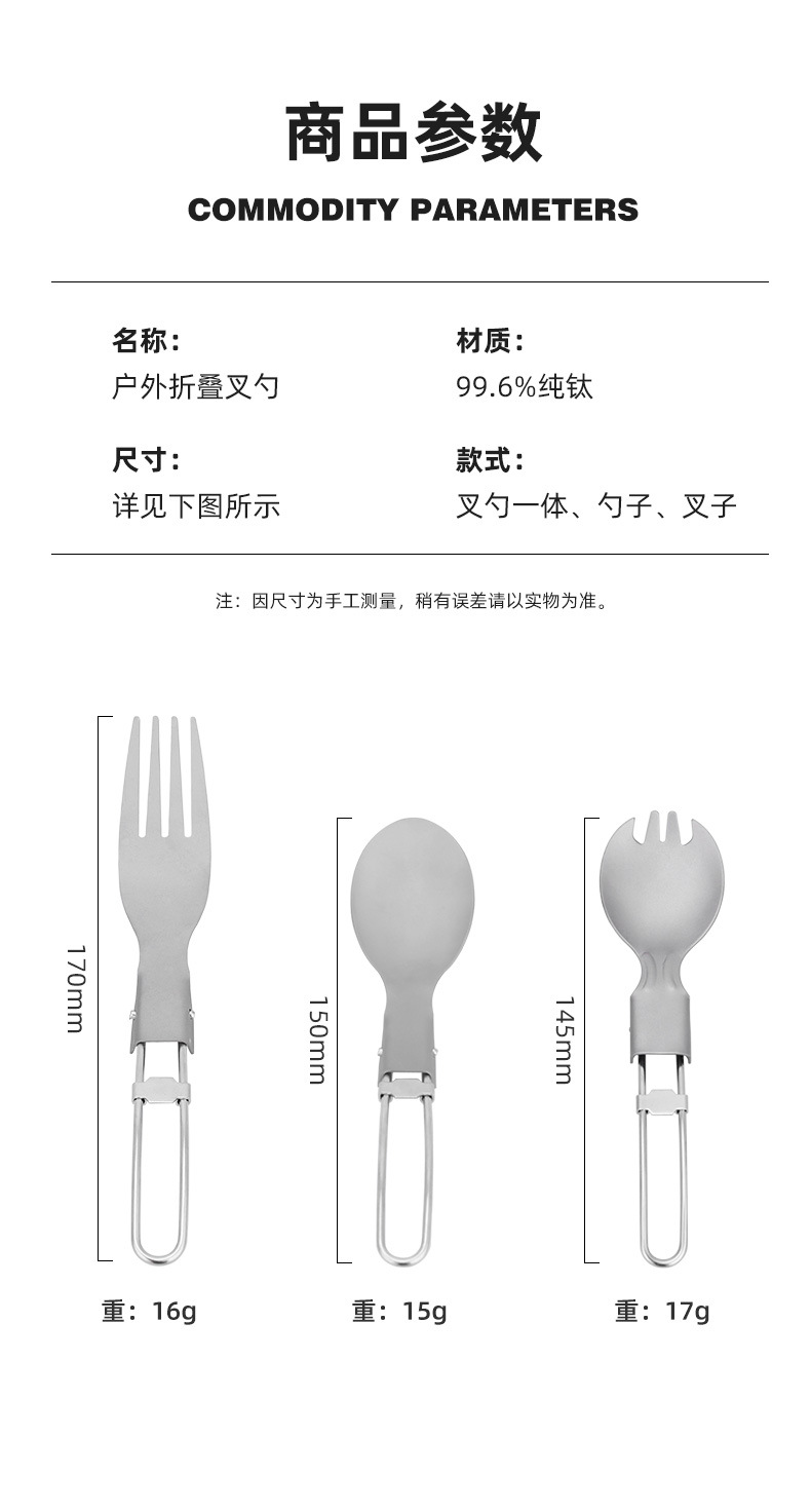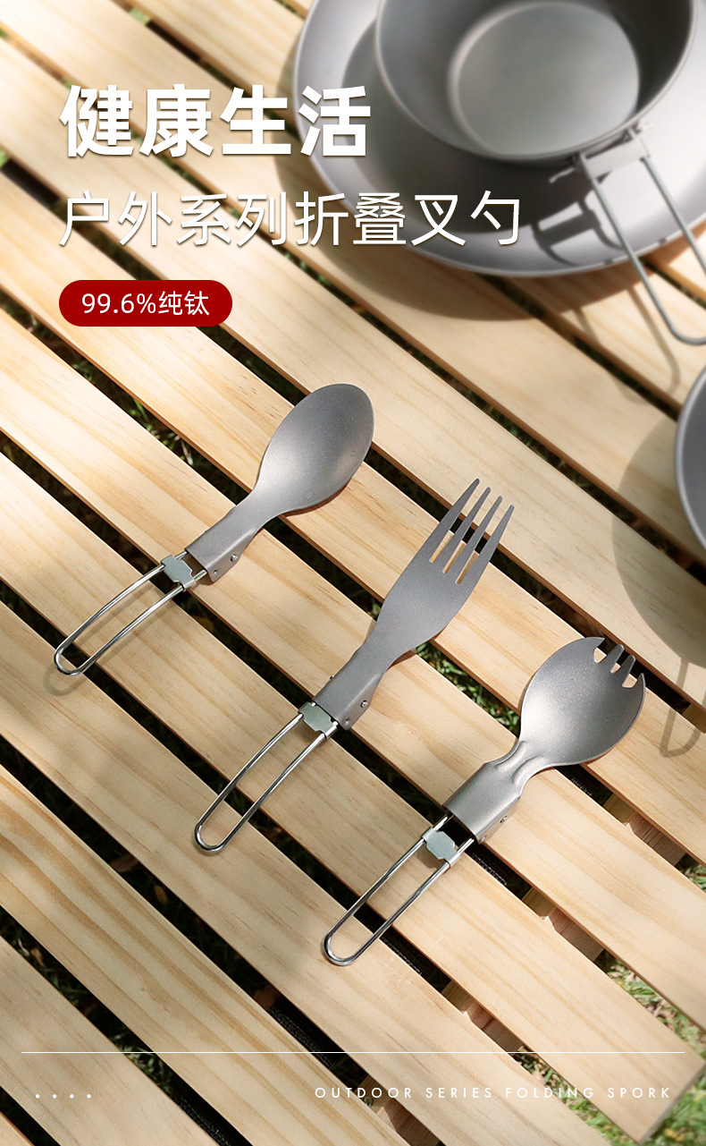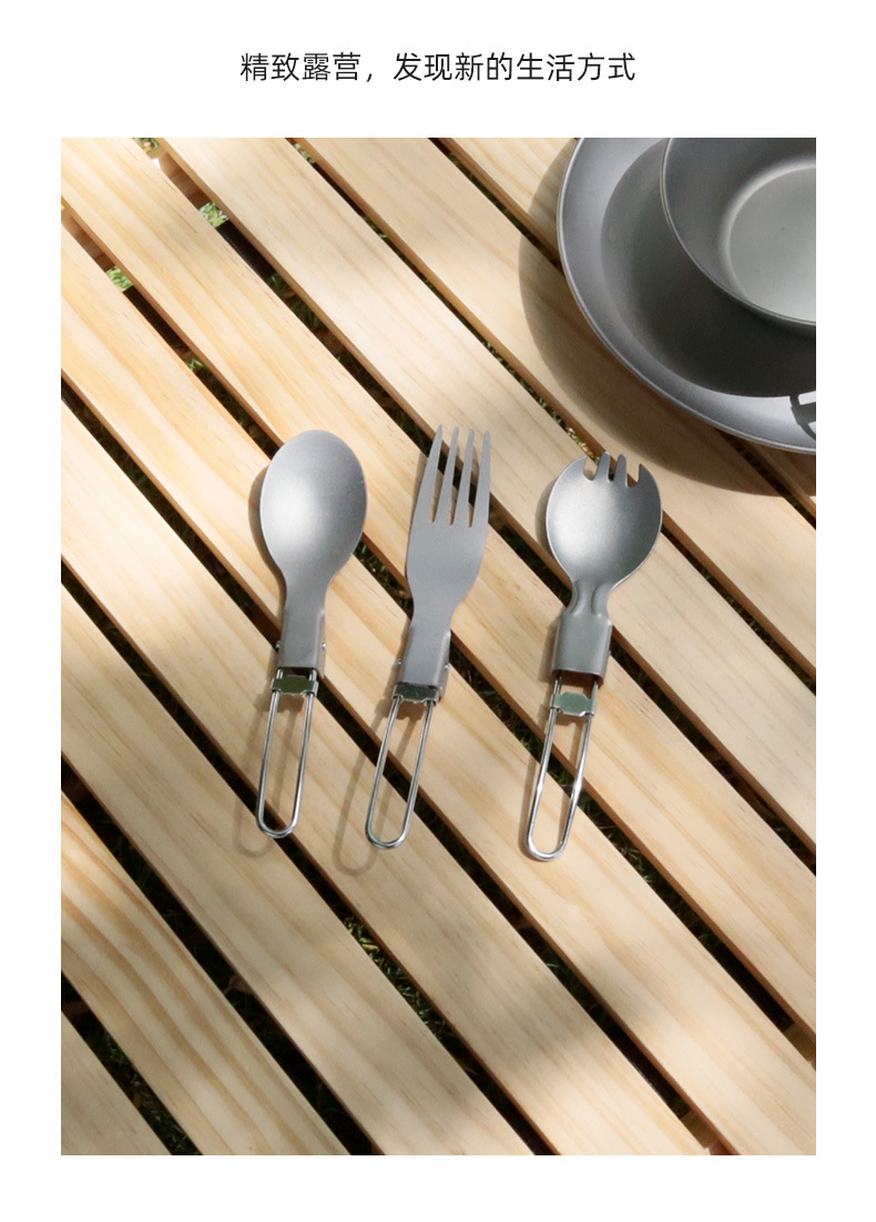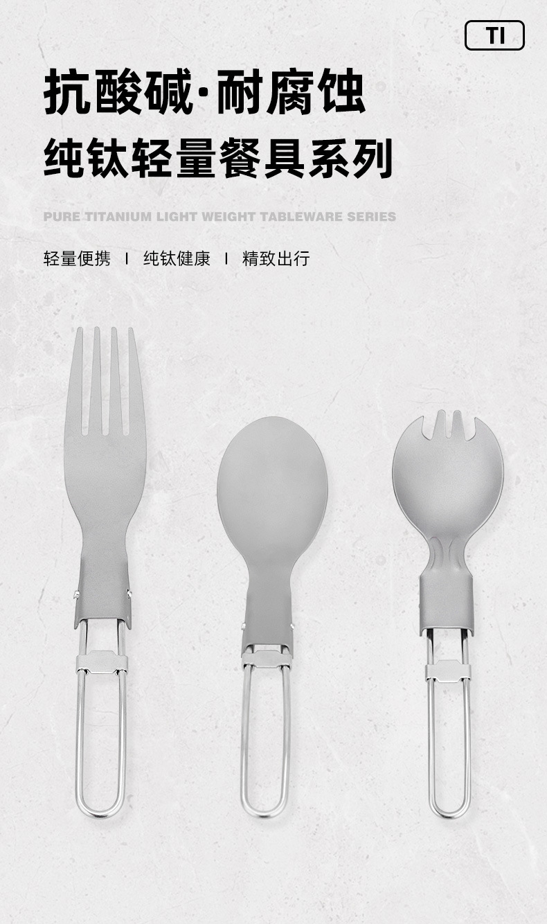 【纯钛户外折叠勺/套装】户外野营纯钛折叠刀叉勺家用钛合金沙拉叉勺子野餐便携餐具三件套