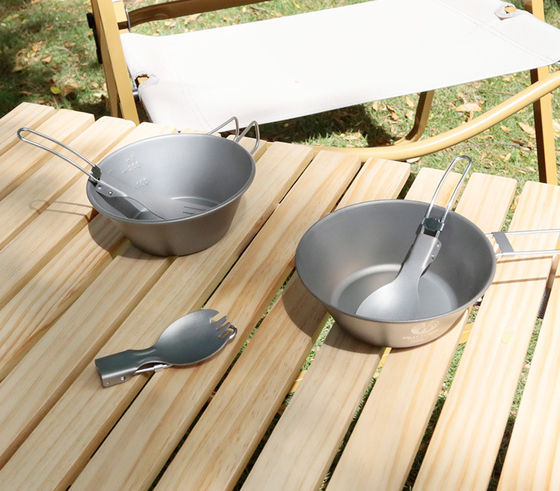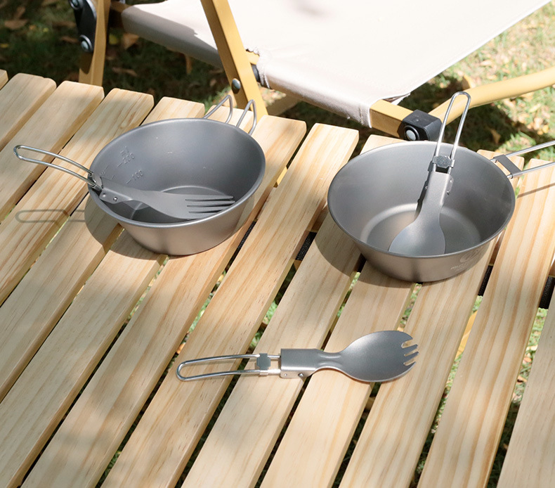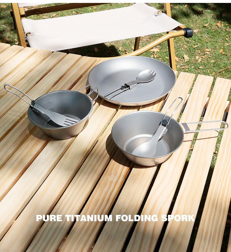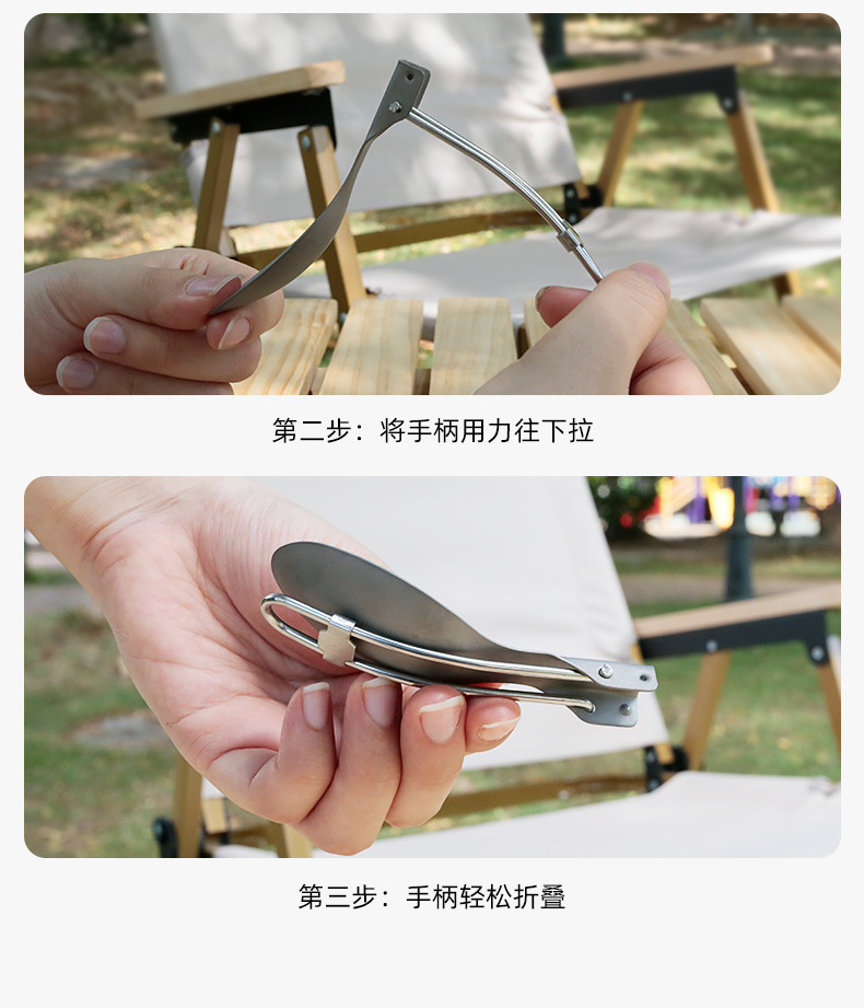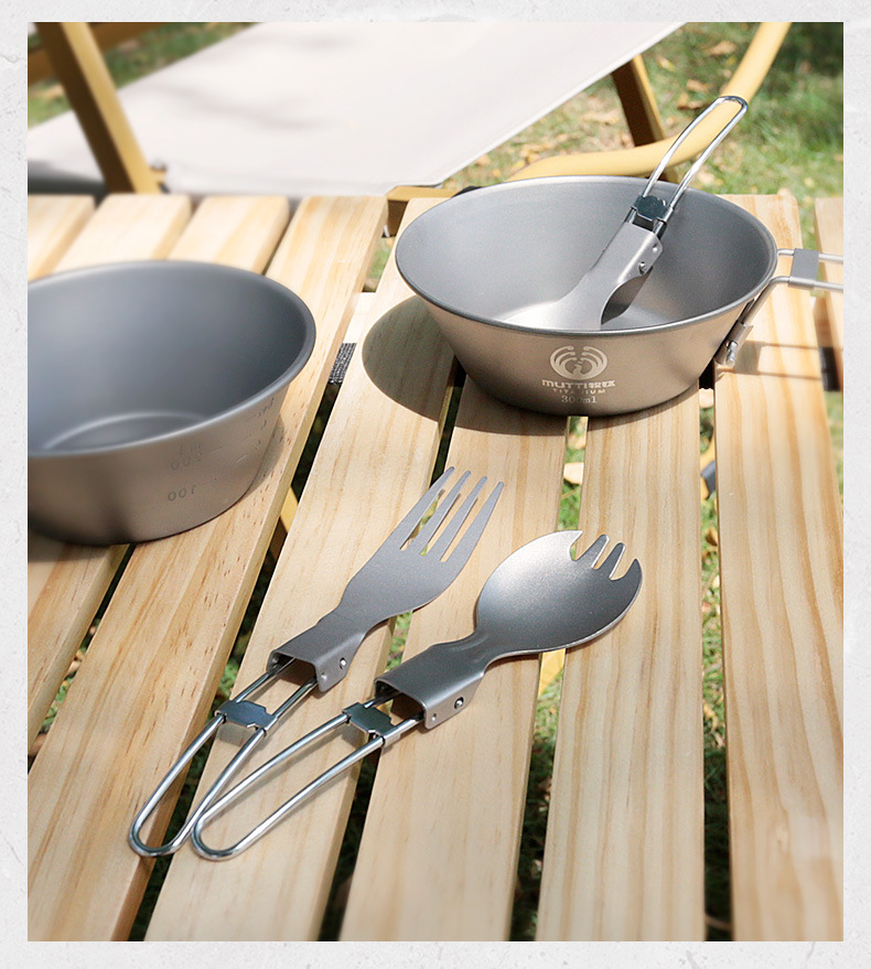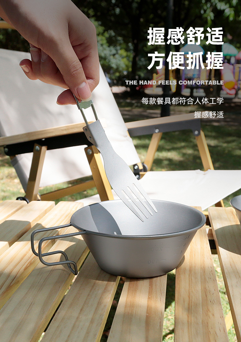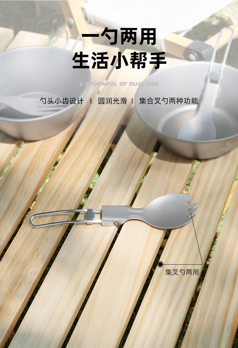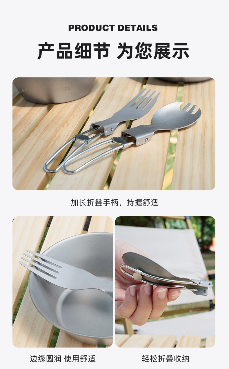 【纯钛户外折叠勺/套装】户外野营纯钛折叠刀叉勺家用钛合金沙拉叉勺子野餐便携餐具三件套