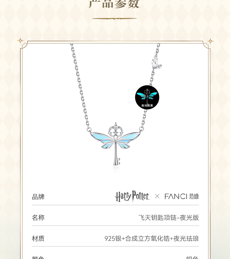 【全球上市】Fanci范琦×哈利·波特联名系列 - 飞天钥匙项链 - 夜光款