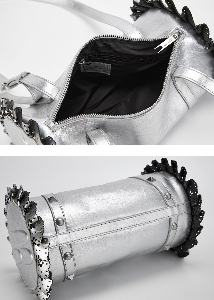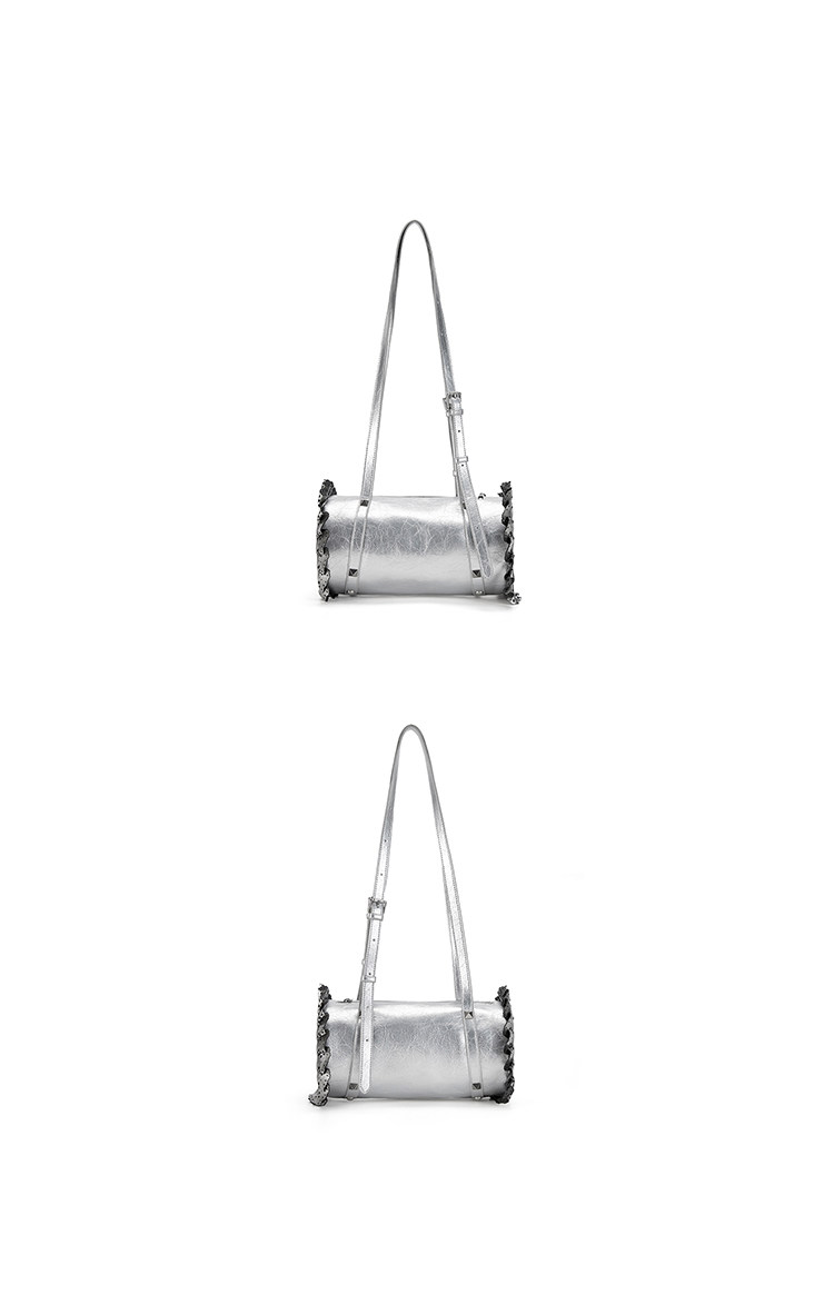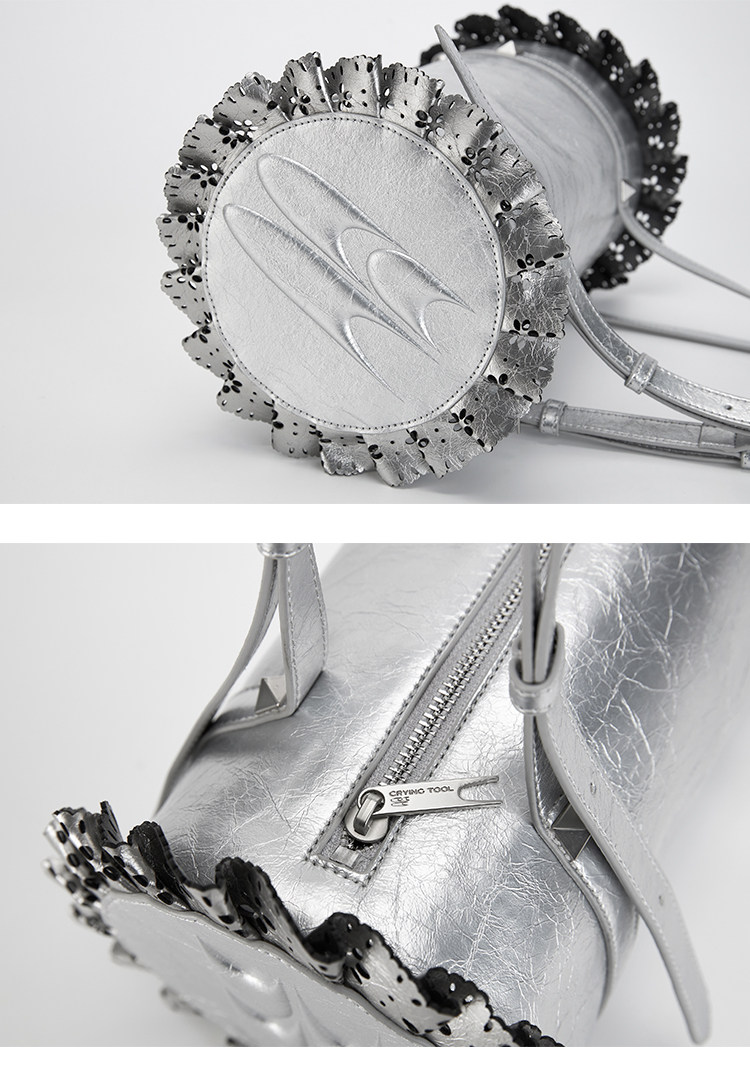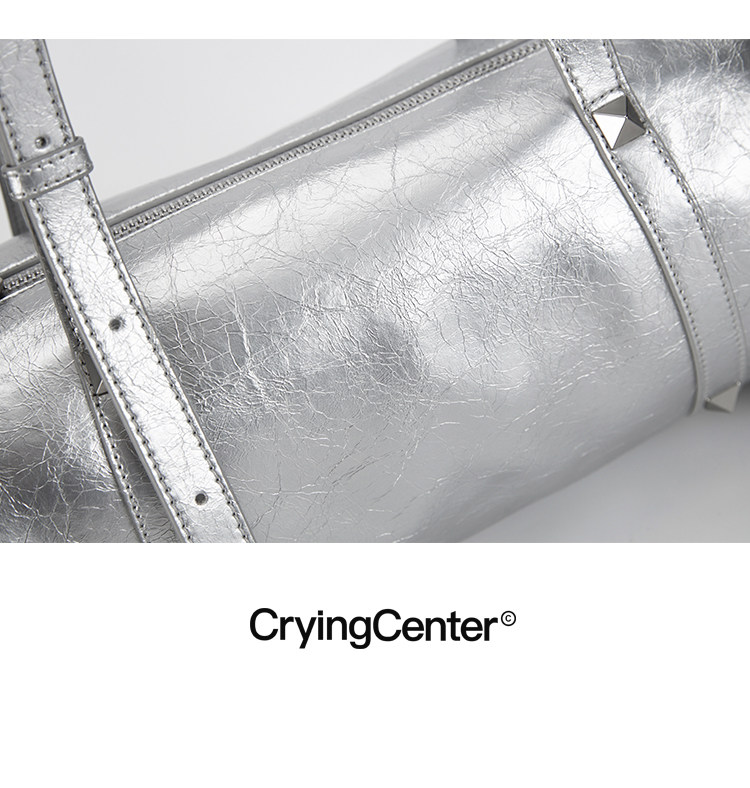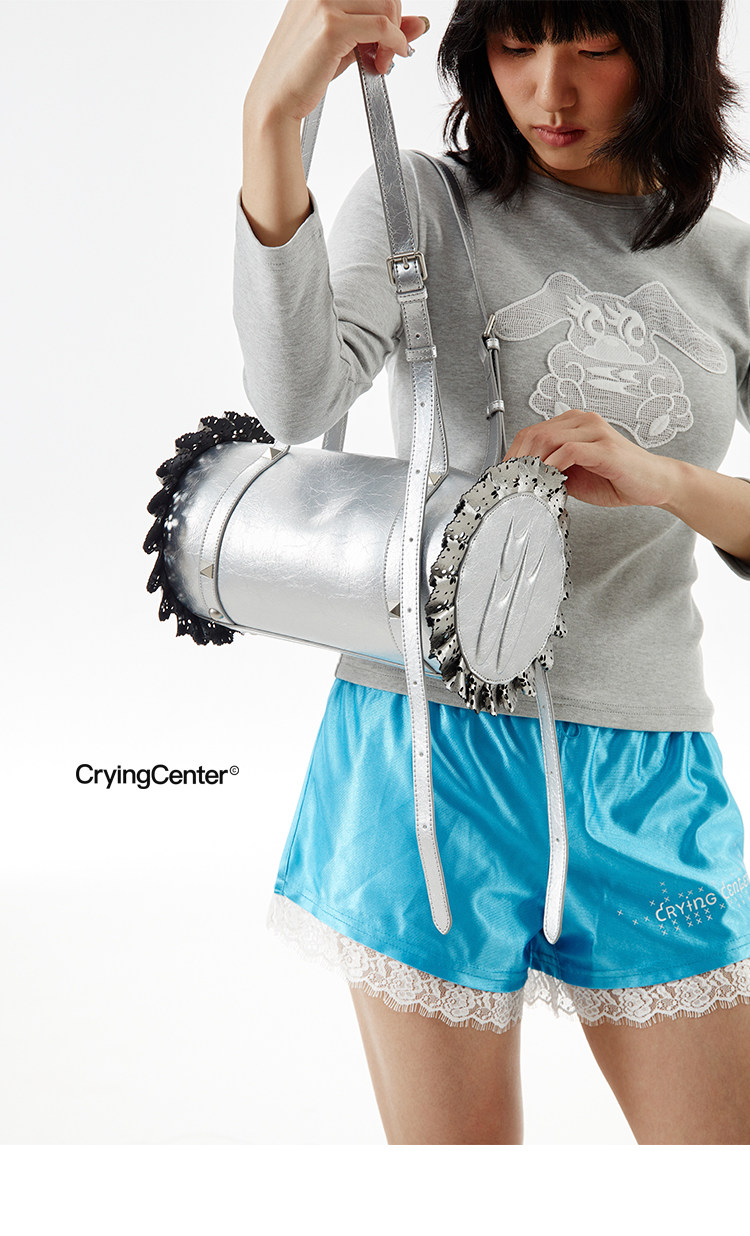 CryingCenter 银色皮革花边圆筒单肩斜挎包 哭喊中心