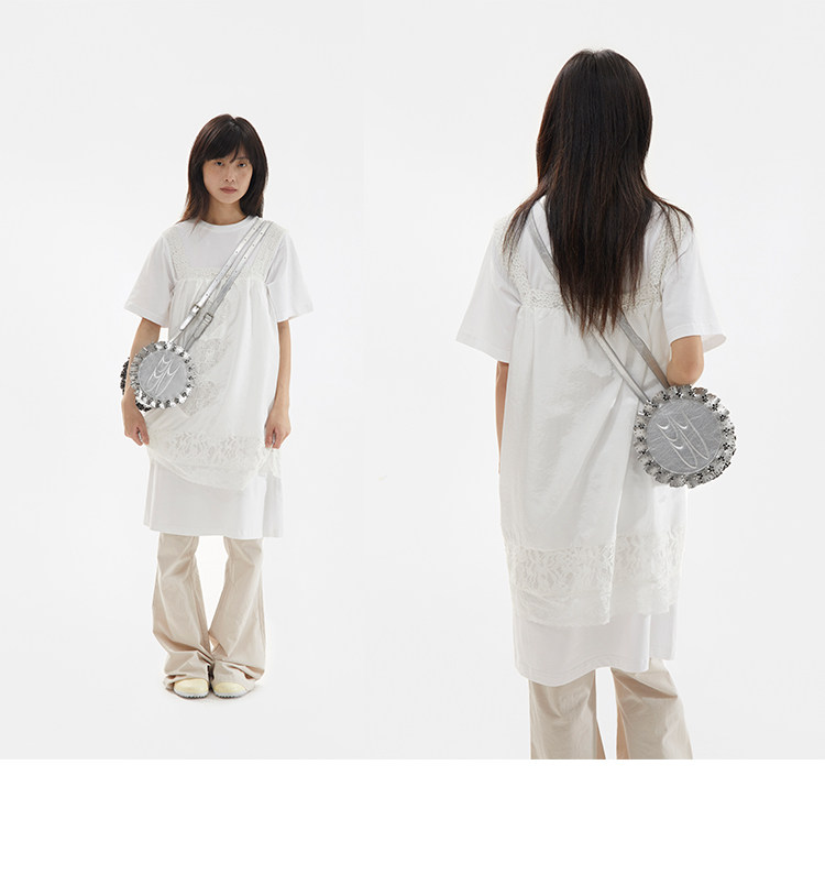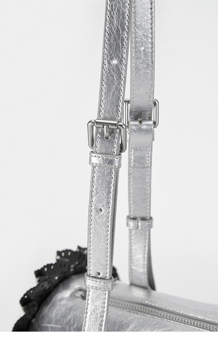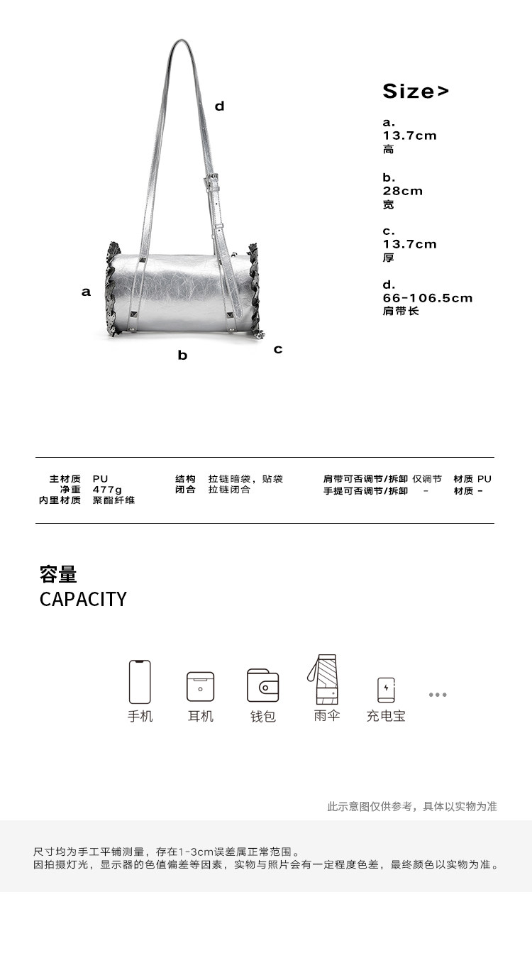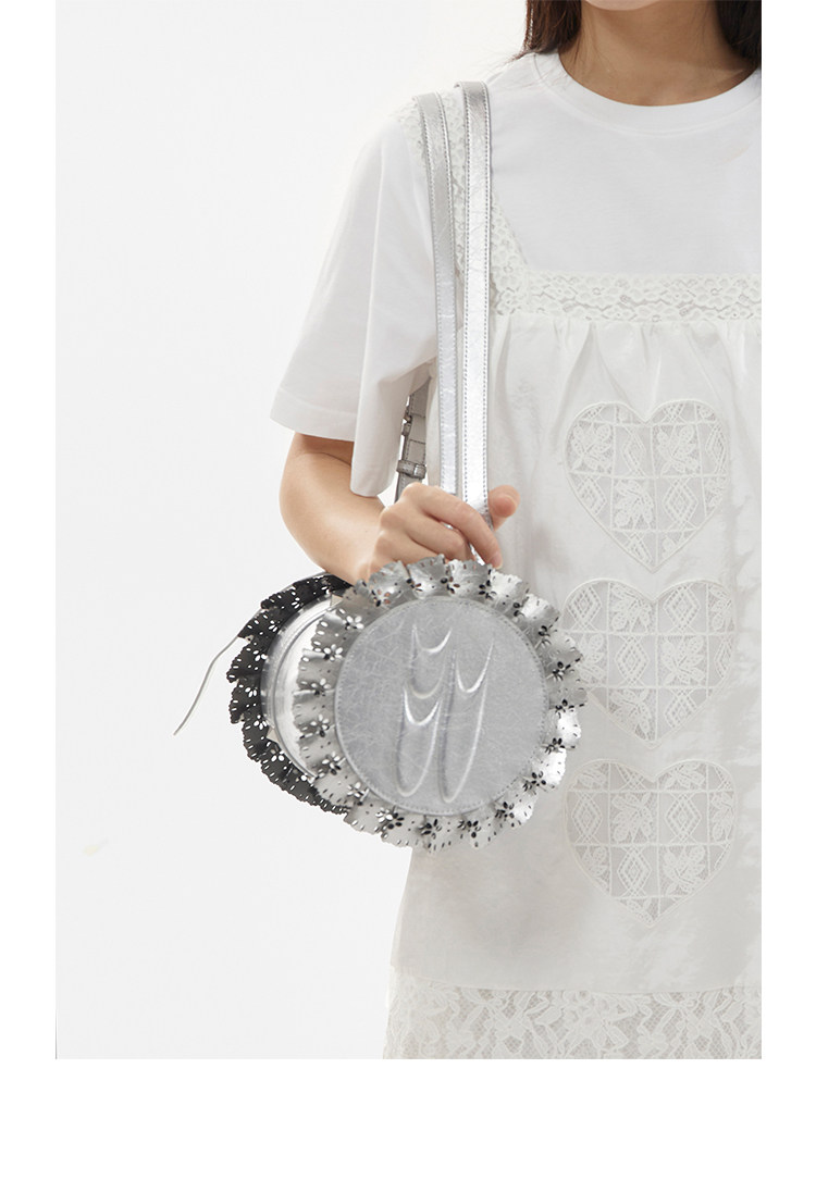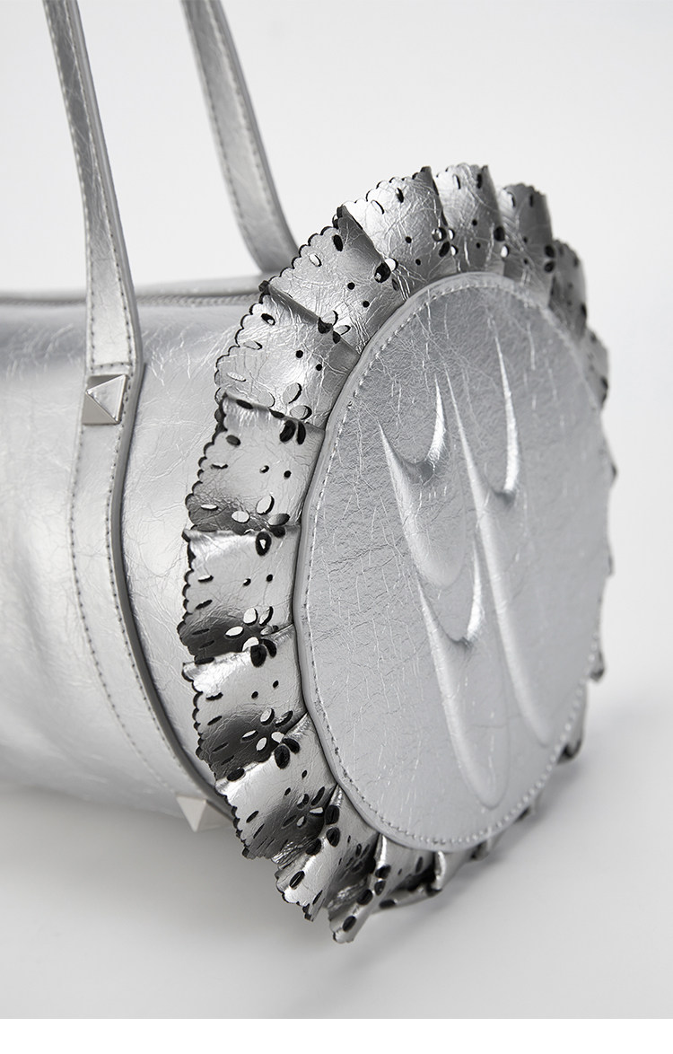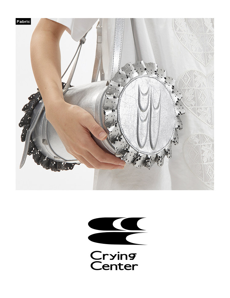 CryingCenter 银色皮革花边圆筒单肩斜挎包 哭喊中心