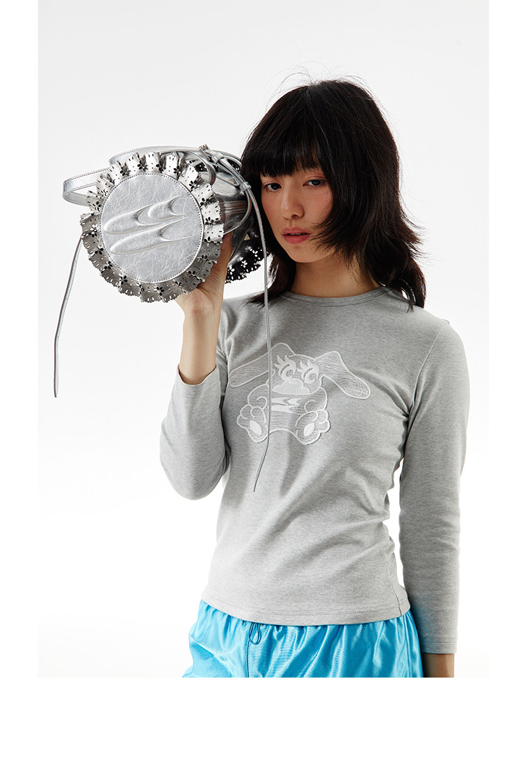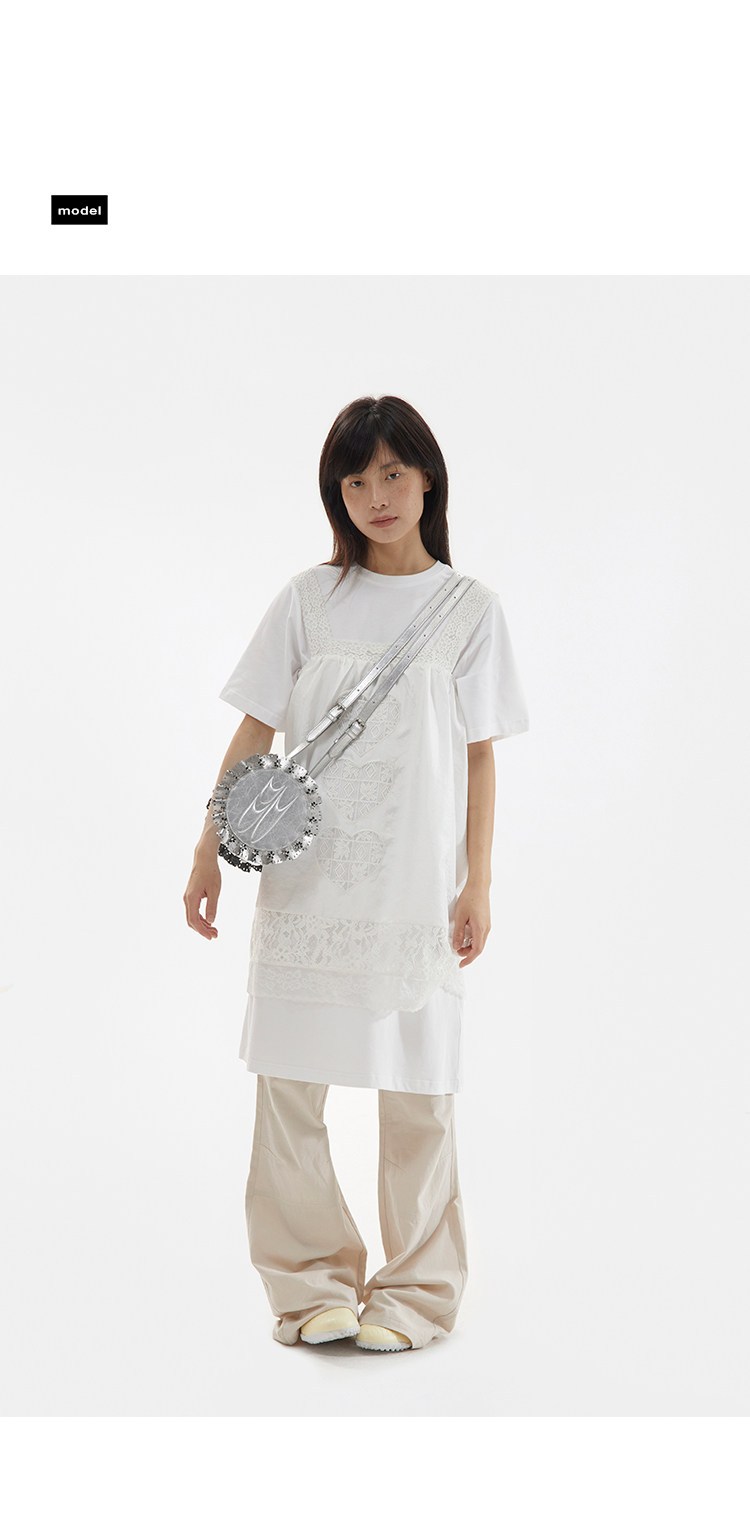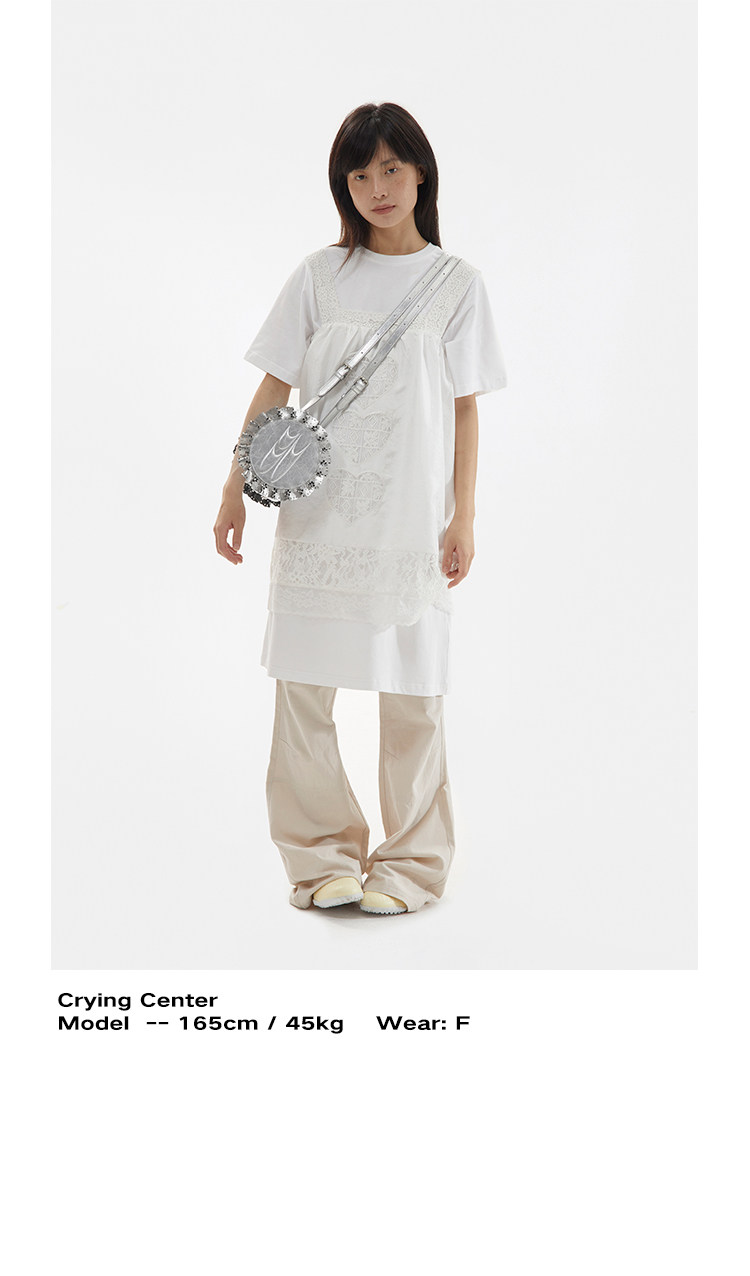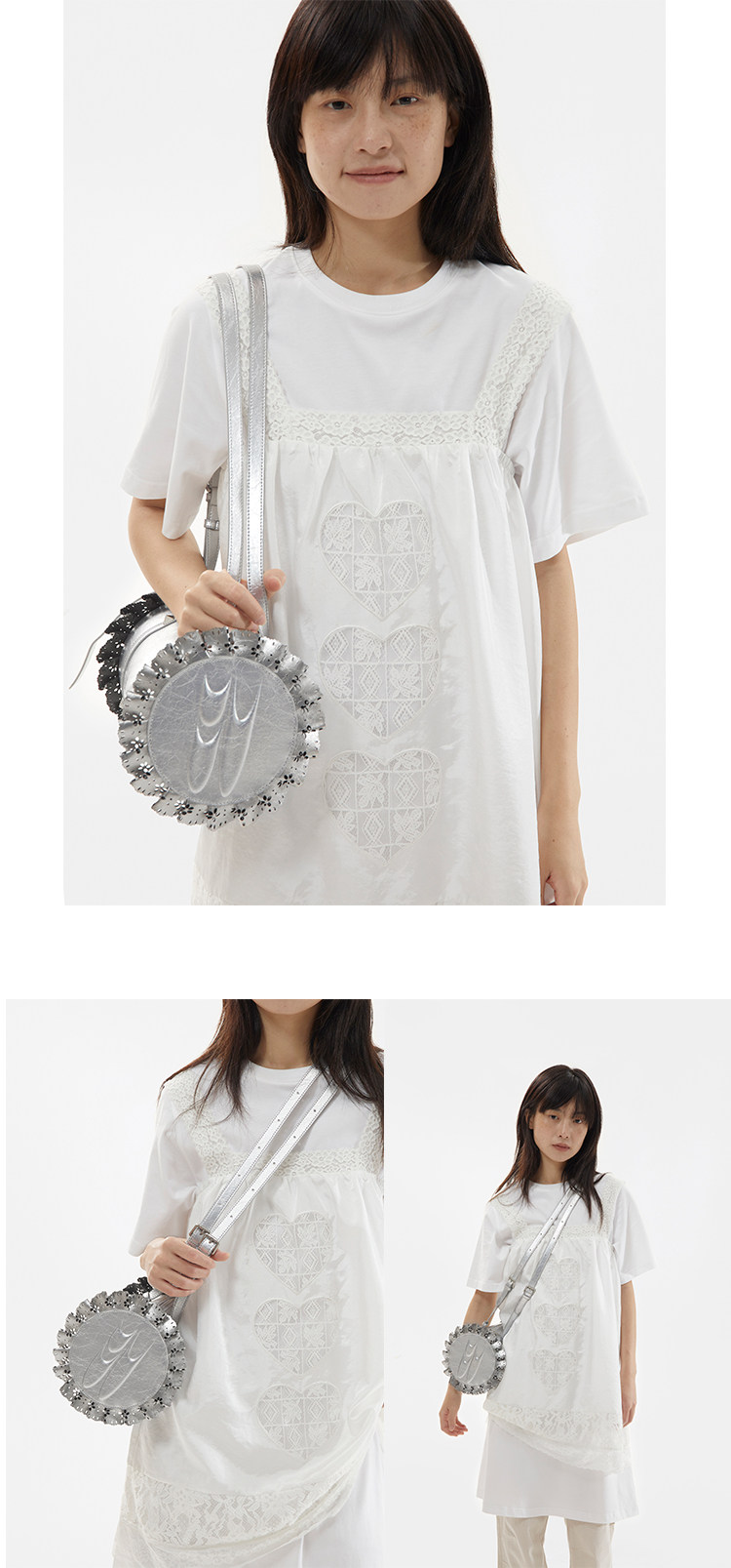 CryingCenter 银色皮革花边圆筒单肩斜挎包 哭喊中心