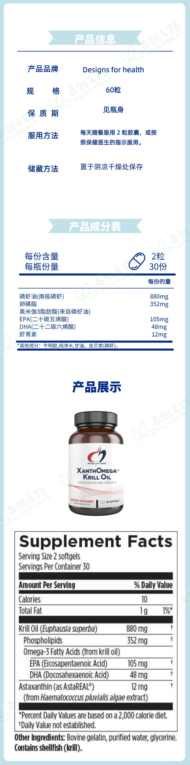 美国健康设 XanthOmega™ Krill Oil磷虾油Y