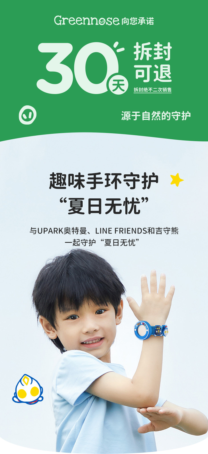 【会员秒杀】绿鼻子防护手环儿童可用IP联名宝宝成人手表圈链随身户外出行用品