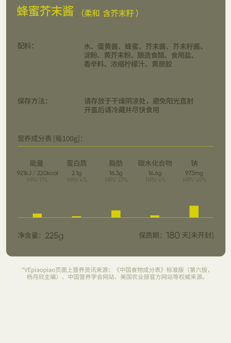 VEpiaopiao NO.32-2蜂蜜芥末酱 柔和微酸款黄芥末酱汉堡三明治酱沙拉酱料