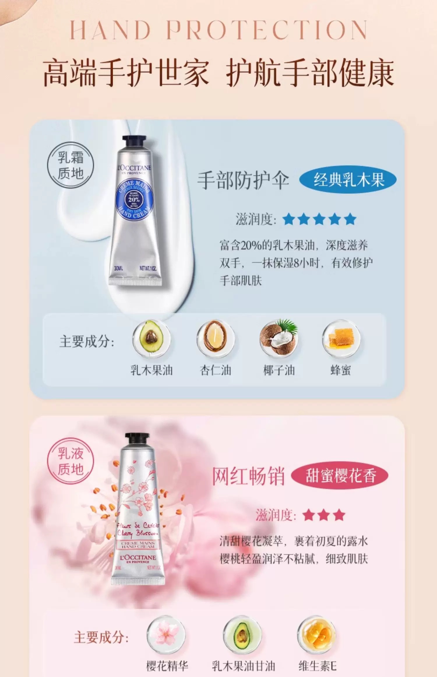 【保税仓】欧舒丹护手霜保湿滋润嫩白女夏天乳木果油樱花持久留香