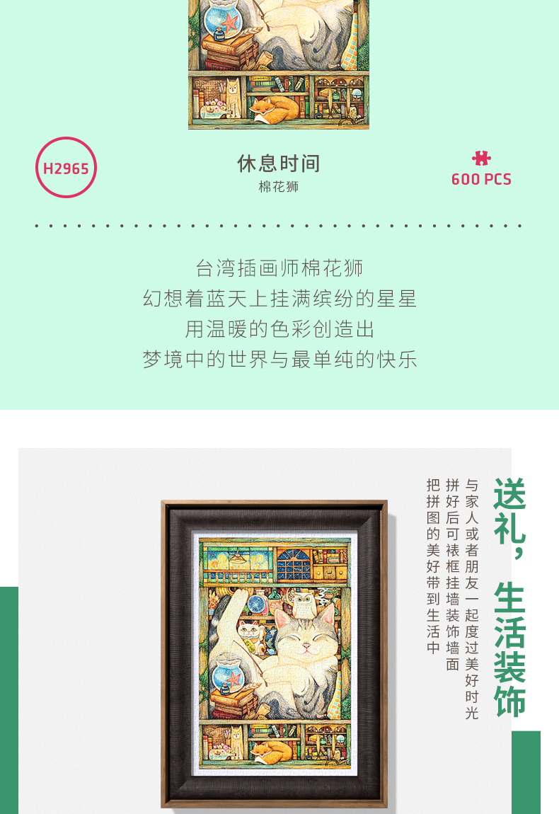 600片平面拼图塑料拼图 H2965 棉花狮-休息时间