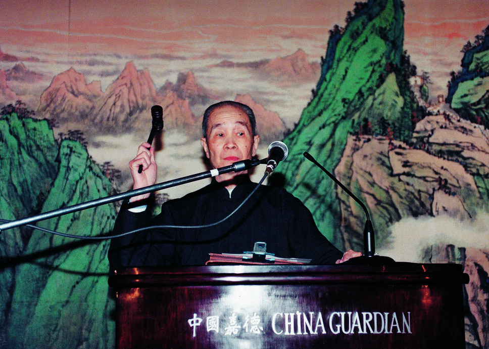 ▲ 鉴定大师徐邦达先生为1994年中国嘉德首场拍卖敲响第一槌