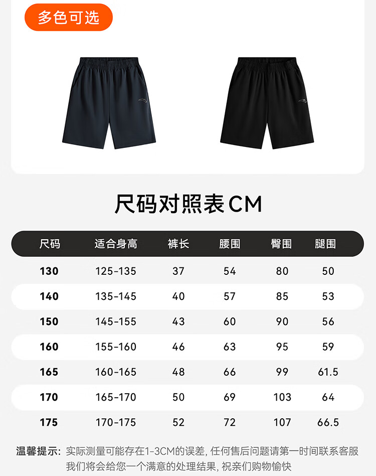 安踏少年安踏青少年夏季下装疾飞速干梭织五分裤中裤男352525517