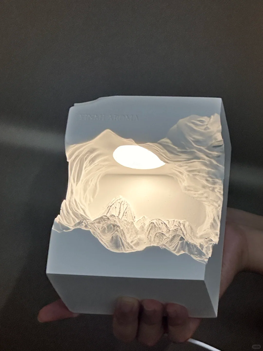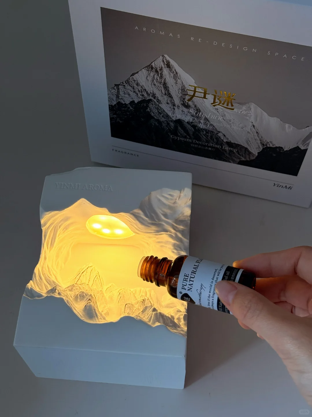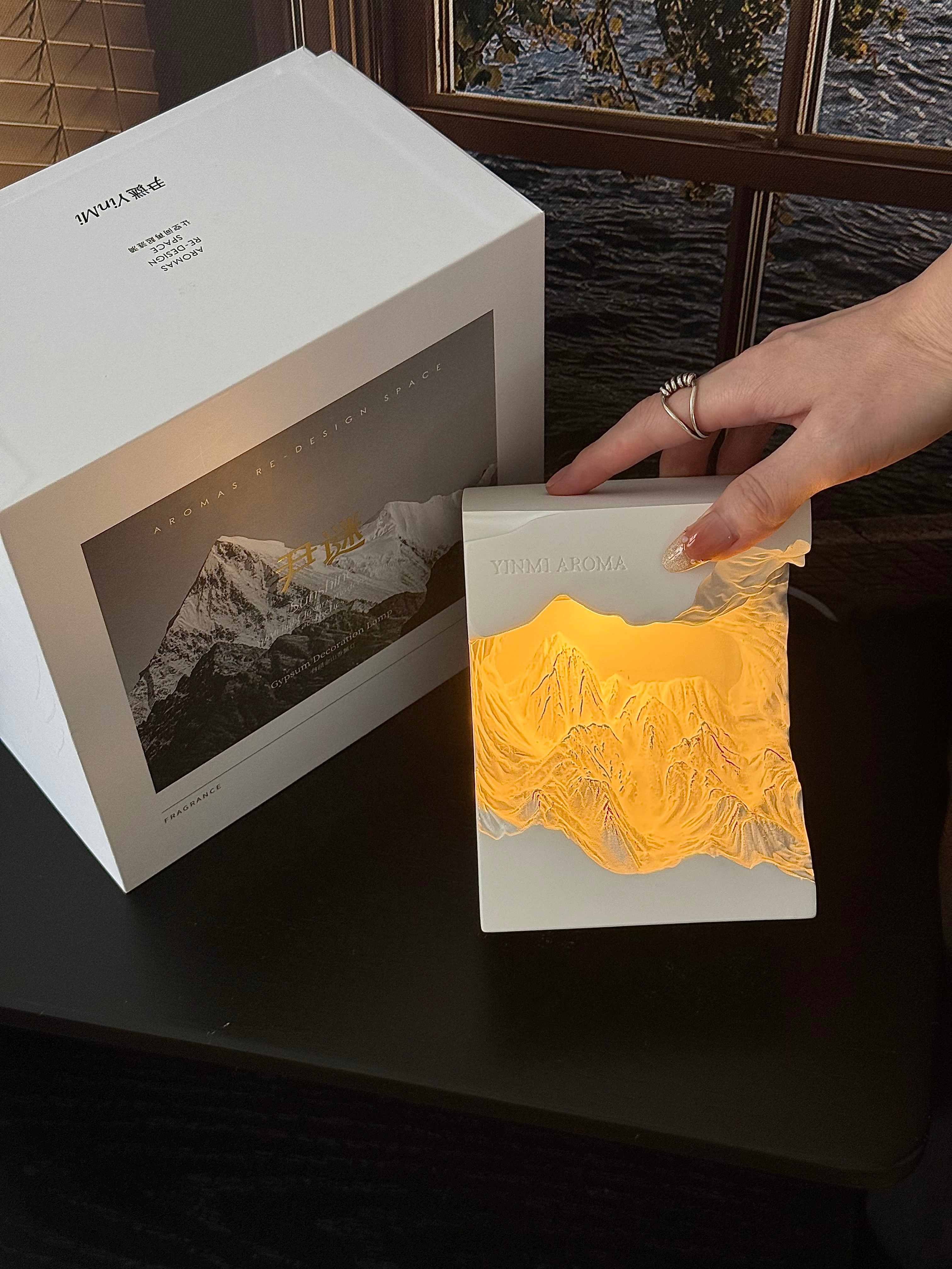 搭配灯光精油随着雕刻的雪山山脉向下流动的样子很治愈