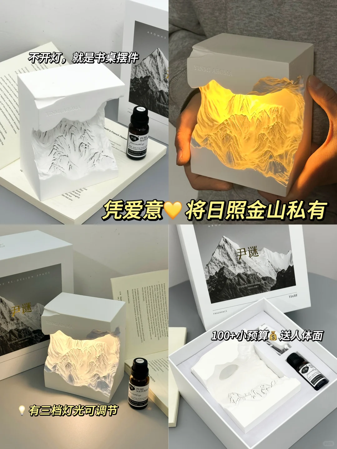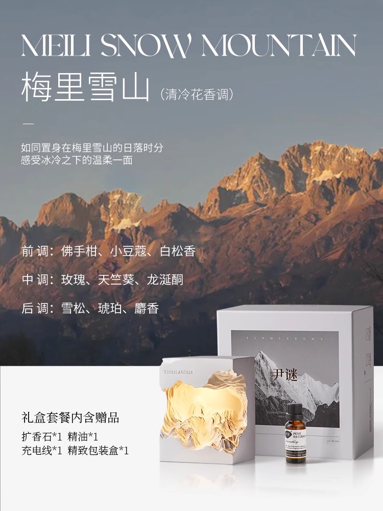 送礼首选【尹谜·日照金山扩香石礼盒】🏔️纯手工雕刻 雪山纹路清晰又精致🎁5款香味可选!✅天然植物萃取精油调香🍃散香舒缓持久