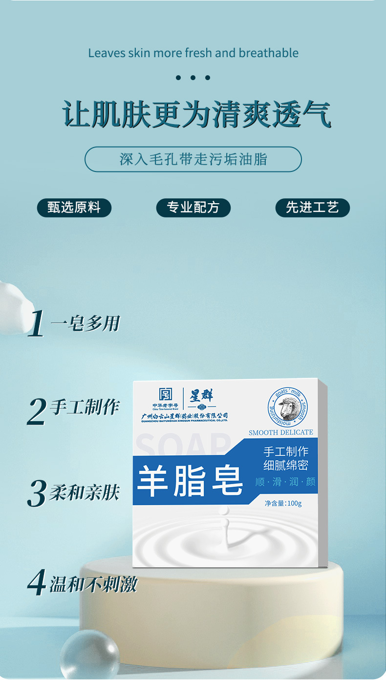 【来自草原的羊脂皂】白云山羊脂皂 羊脂精华护肤 一皂多用 温和不刺激 100g/块