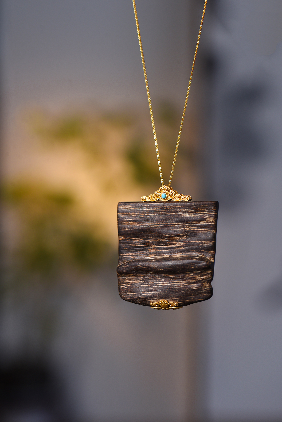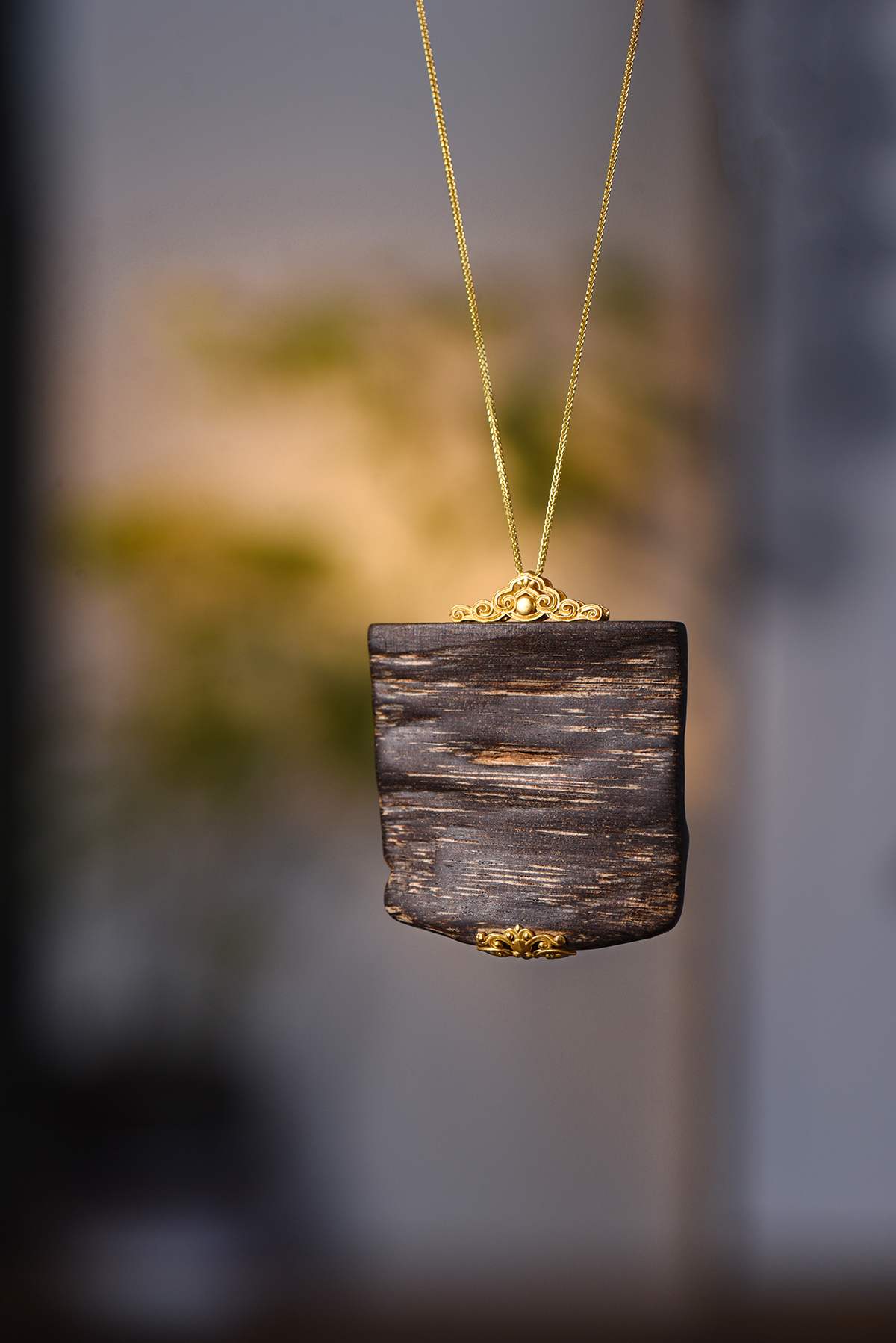 天然文莱沉香包金吊坠 沉水级 SP7644