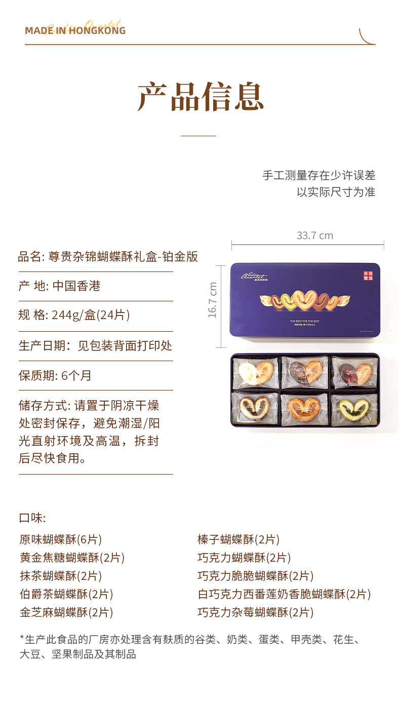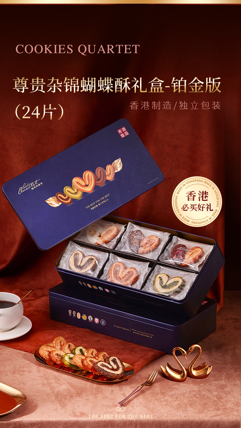 曲奇四重奏尊贵杂锦蝴蝶酥礼盒—铂金版244g/盒(24片)