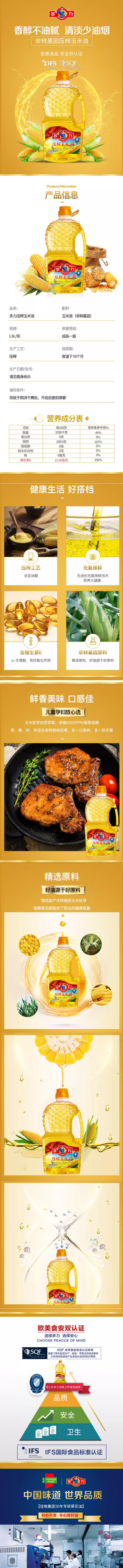 1.8L多力压榨玉米油 非转基因 清淡少油烟