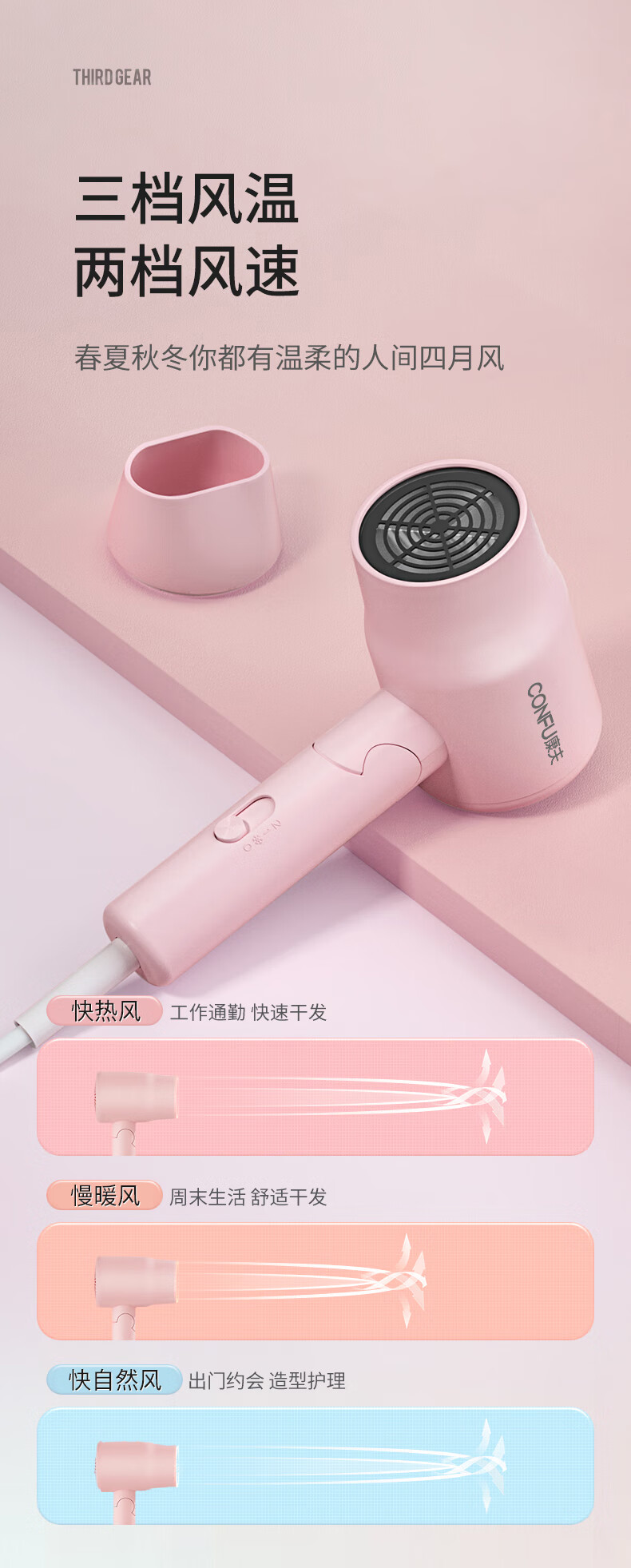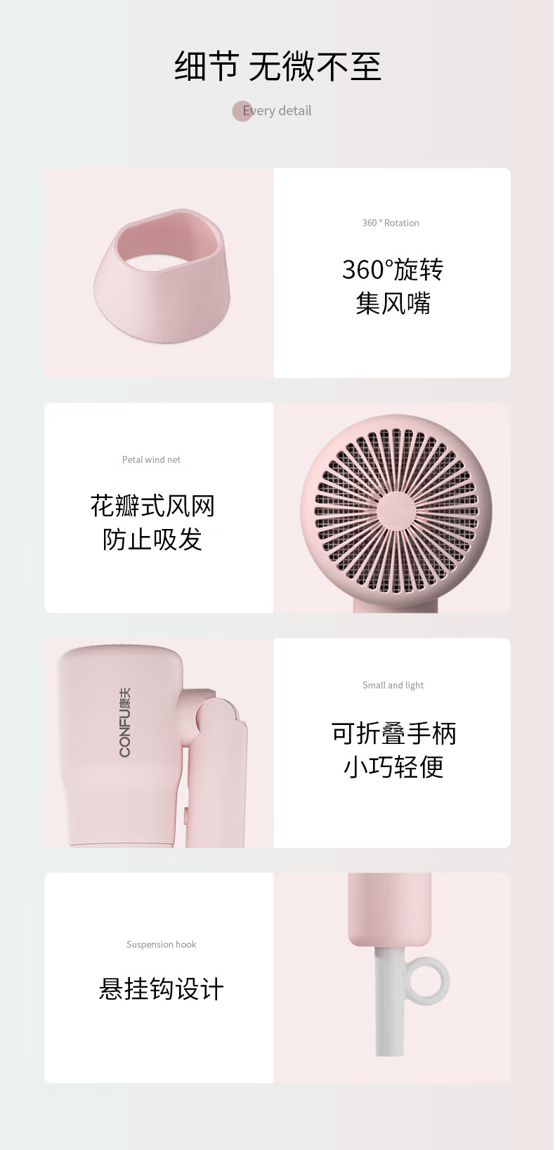 康夫(CONFU)电吹风家用 800W小功率折叠 速干恒温护发冷热风 小型便携式迷你吹风筒KF-5135