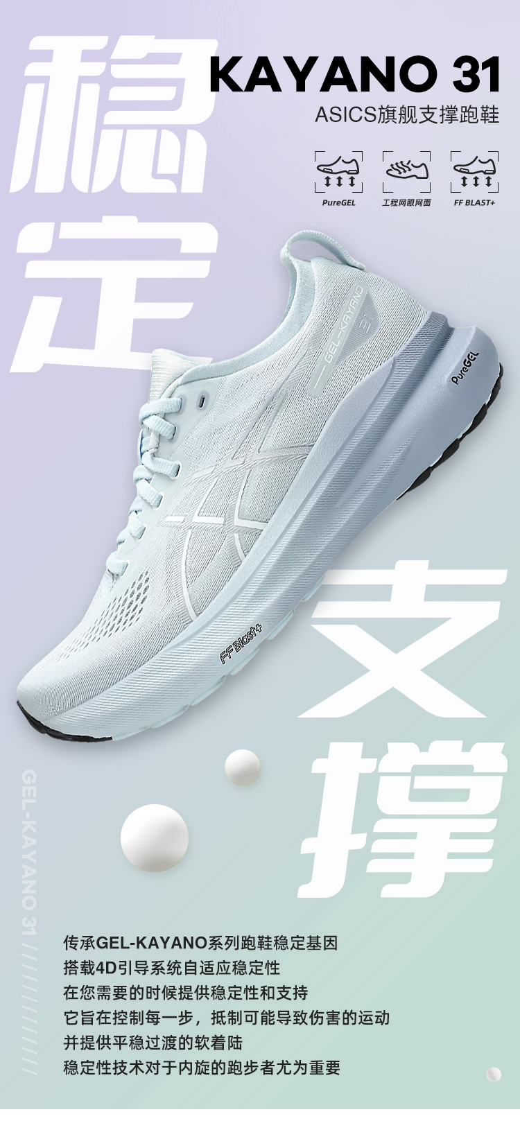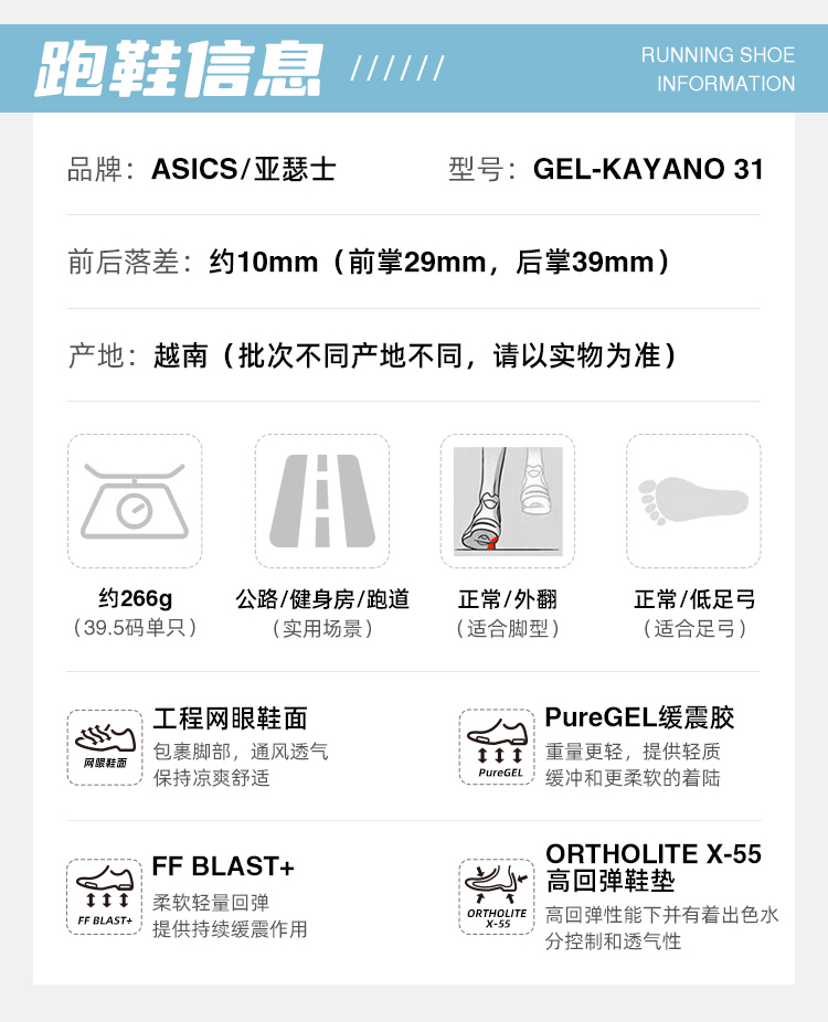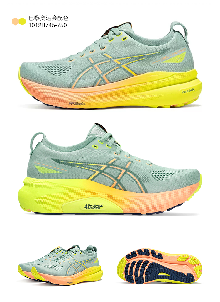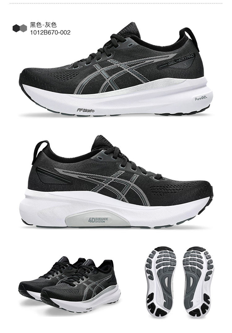 ASICS亚瑟士Kayano31女黑武士稳定支撑跑鞋K31轻量升级缓震运动