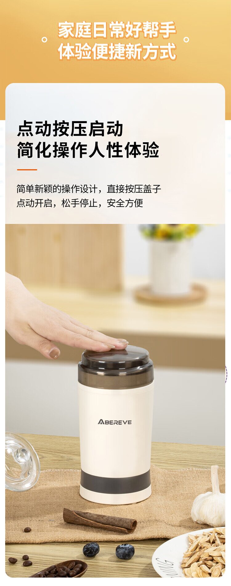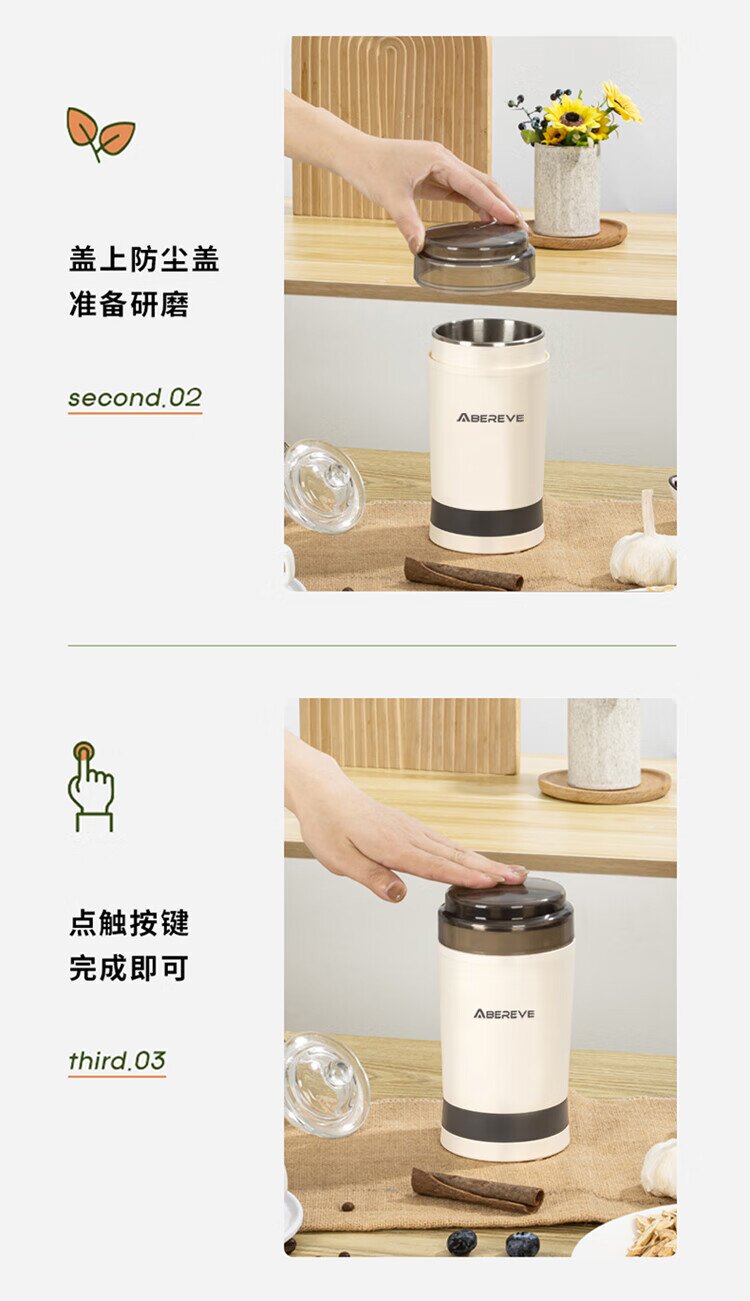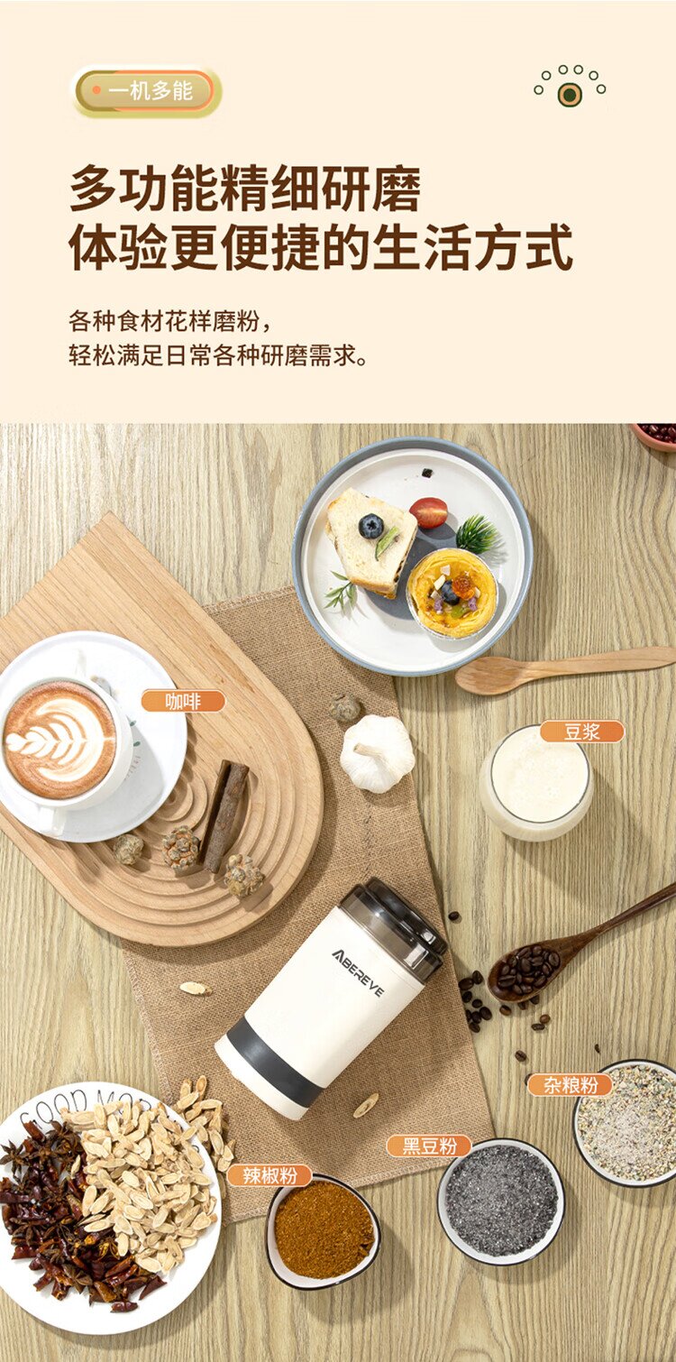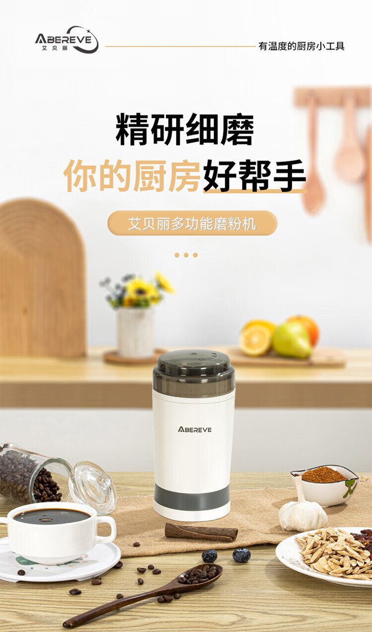 艾贝丽研磨机ABL-YM123(灰白色,外壳PP+不锈钢内胆)
